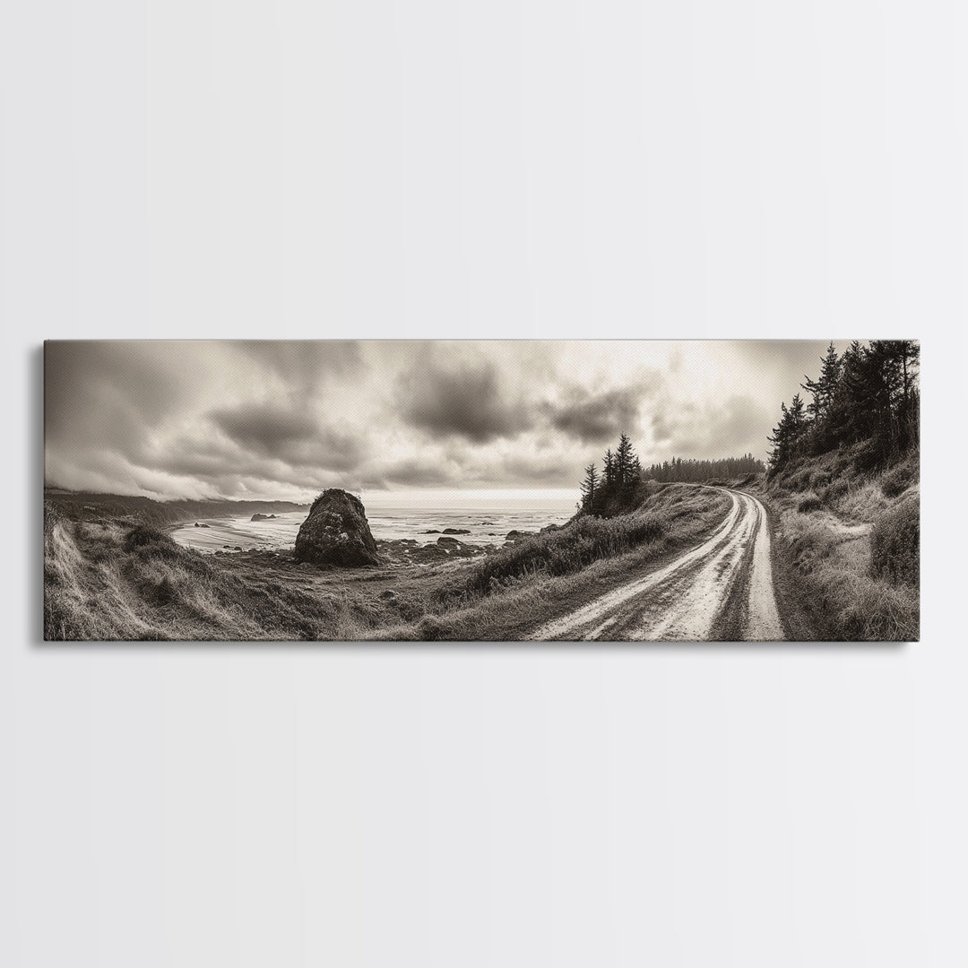 Coastal Road, southwest wall art, rustic decor, coastal landscape art, boho art, panoramic painting, gift idea for him, Canvas Print