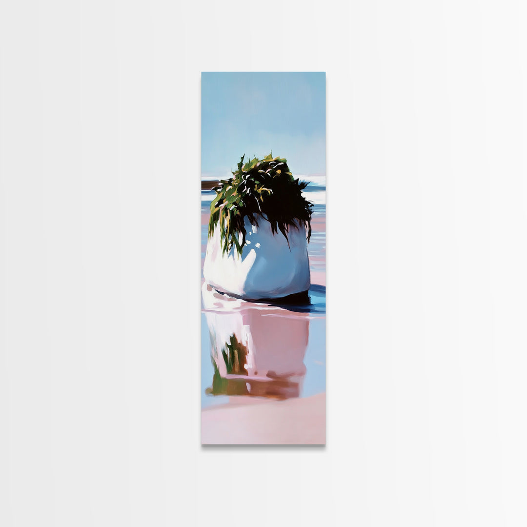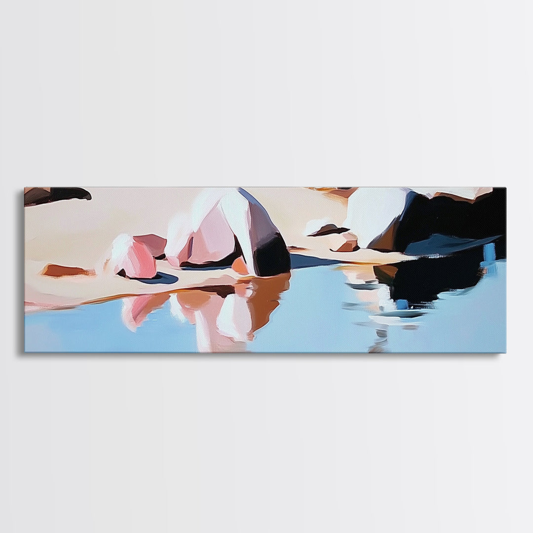 Coastal Rocks, Beach Reflection, Seascape Painting, Pastel Shoreline Art, Minimalist Nautical Decor, Living Room Art, Framed Canvas Print