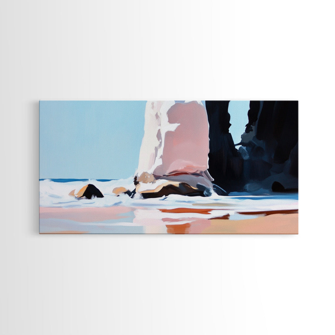 Coastal Rock Formations, beach painting, framed canvas print, coastal wall art, nautical decor, seascape painting, extra wide art
