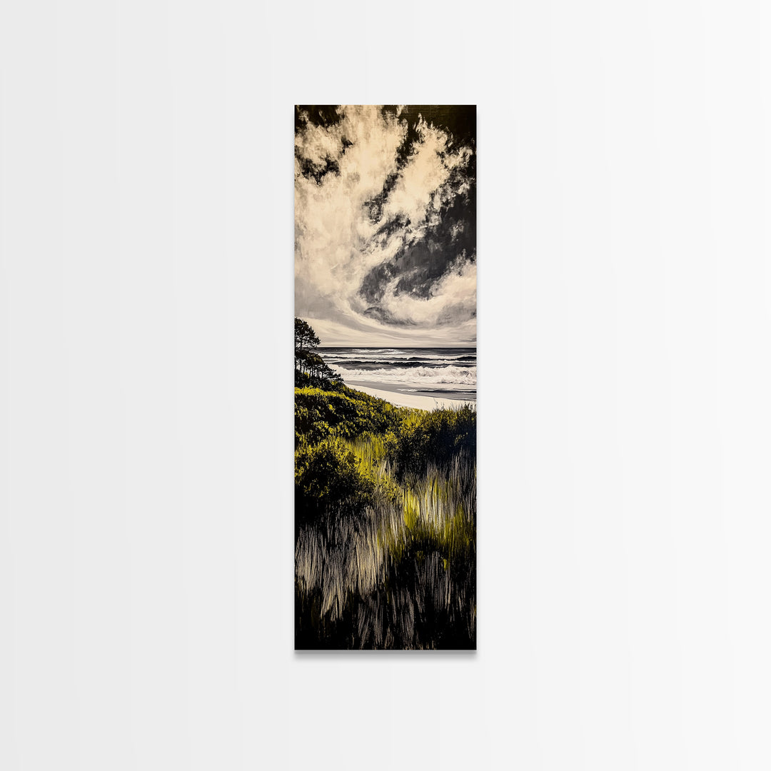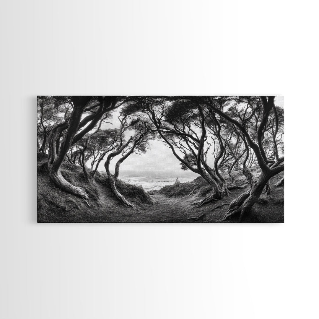 Coastal Trees, Windswept Forest, Ocean View, Framed Canvas Print, Boho Wall Art, Living Room Art, Nature Wall Decor, Monochrome Landscape