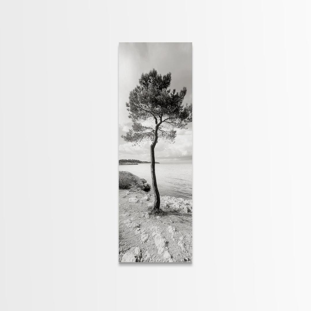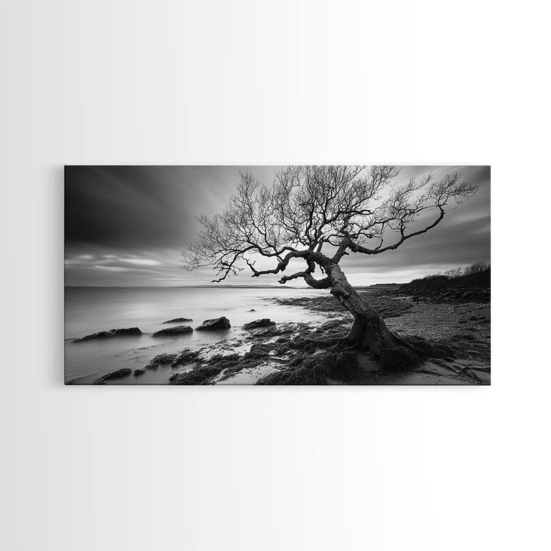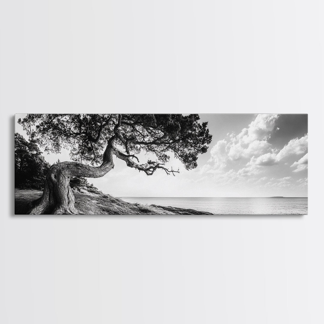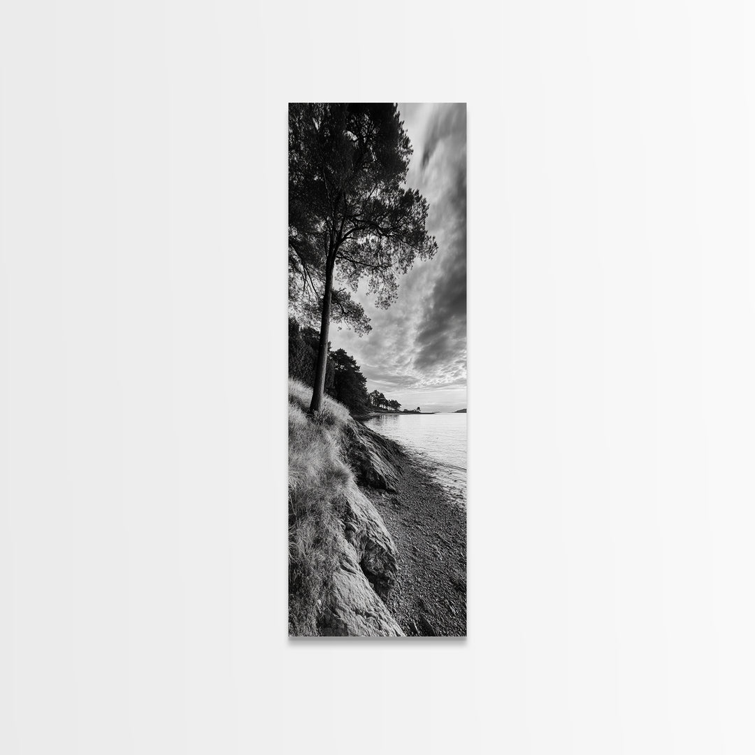 Coastal Tree, Pacific Northwest, Serene Landscape, Monochrome Nature Scene, Framed Canvas Print, Entryway Art, Rustic Cabin Wall Decor