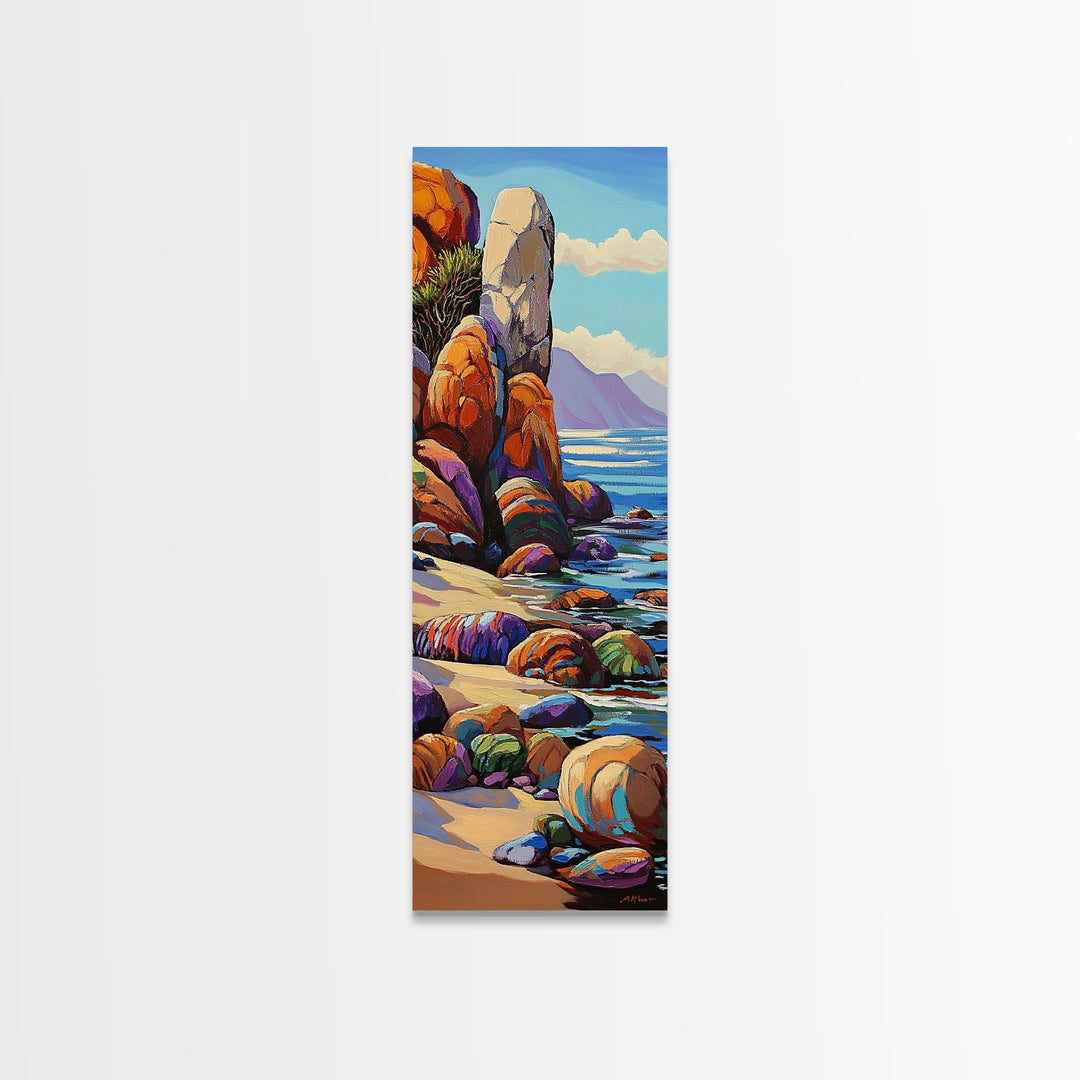 Coastal, Rocks, Ocean, Desert Scene Canvas Print, Bold Color Seascape, Nature Inspired Wall Art, Beach House Decor, Bohemian Art Style