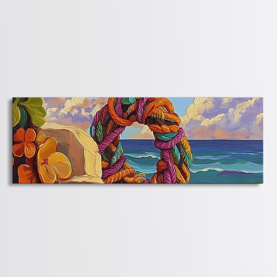 Coastal Wreath Art, Nautical Vibes, Colorful Rope, Framed Canvas Print, Beach House Wall Art, Summer Home Decor, Tropical Boho Art