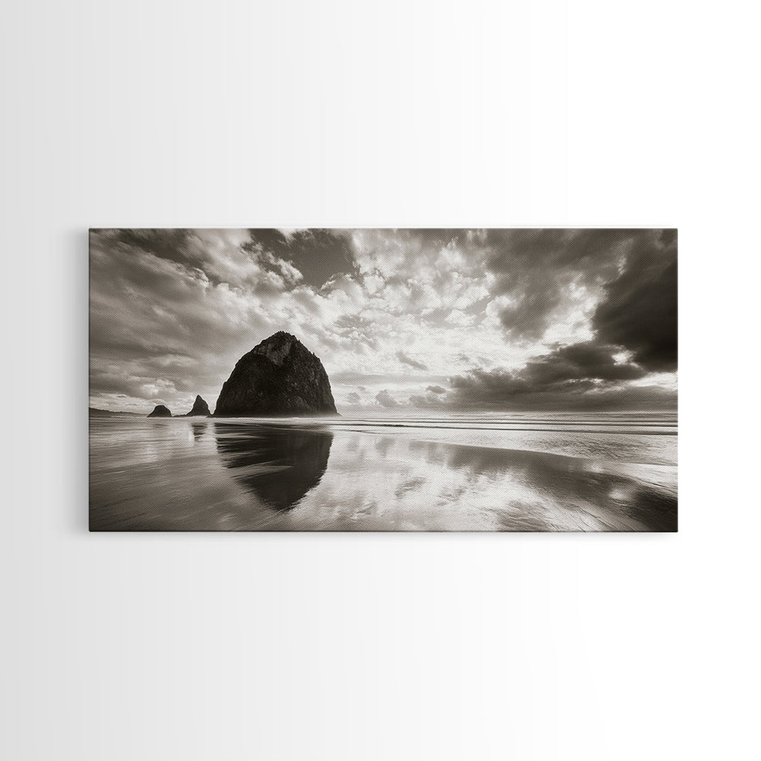Coastal, seascape, moody art, ocean view, nautical wall art, panoramic painting, extra wide art, above bed wall art, framed canvas print