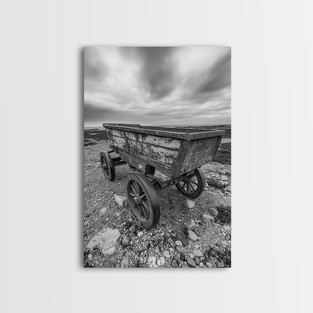 Coastal Wooden Cart, nautical decor, coastal painting, rustic art, vintage Christmas, farmhouse art, framed canvas print