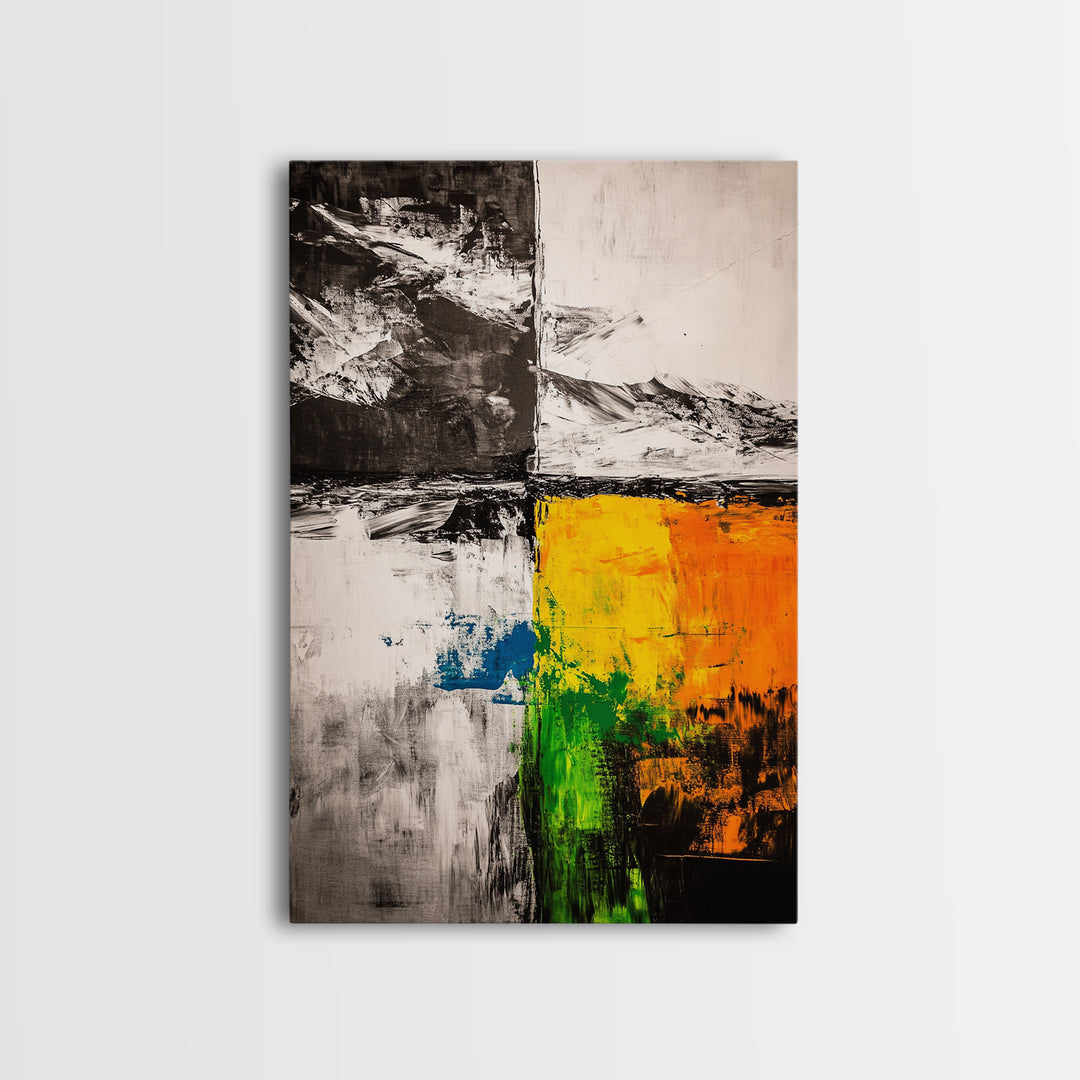 Color Block, Abstract Art, Geometric Style, Modern Painting, Vibrant Yellow, Black and White, Contemporary Wall Decor, Canvas Print