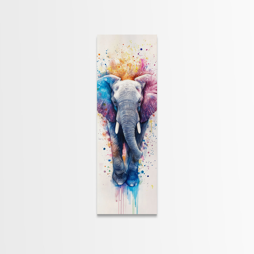 Colorful Elephant Art Canvas Print Watercolor Animal Wall Art Vibrant Nursery Decor Unique Splatter Art Kids Room Accent Piece