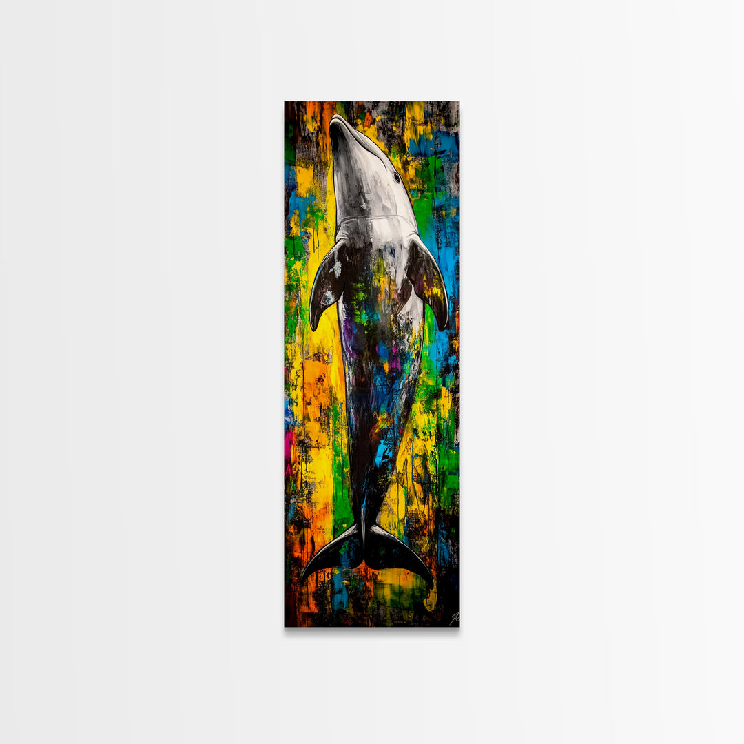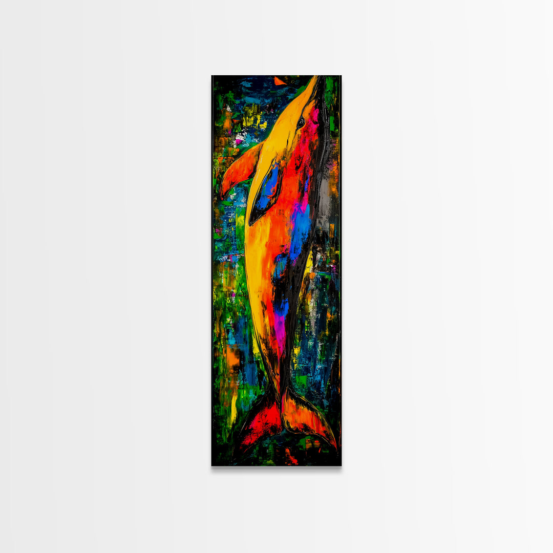 Colorful Dolphin, Ocean Animal Art, Coastal Home Decor, Canvas Print, Vibrant Sea Life, Nautical Wall Art, Beach House Artwork
