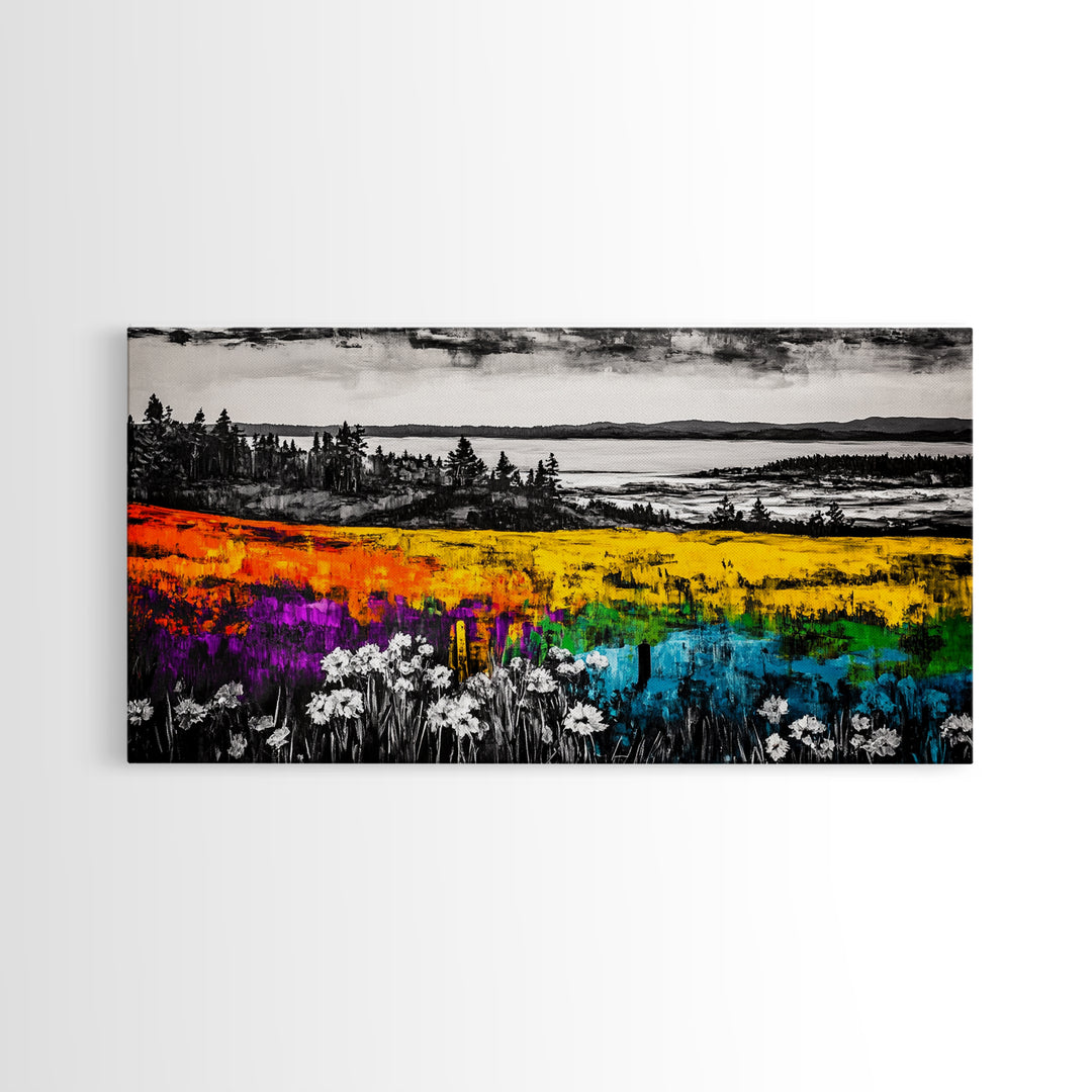 Colorful Field, Wildflower Meadow, Nature Landscape, Framed Canvas Print, Farmhouse Decor, Rustic Art, Bedroom Wall Art, Vibrant Colors