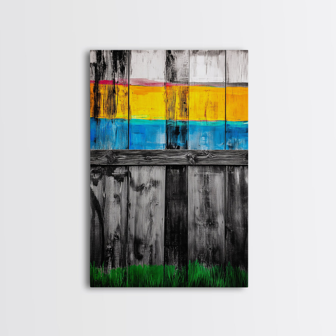 Colorful Fence, Abstract Wood, Rustic Modern, Framed Canvas Print, Farmhouse Wall Art, Bold Color Decor, Eclectic Home Accent