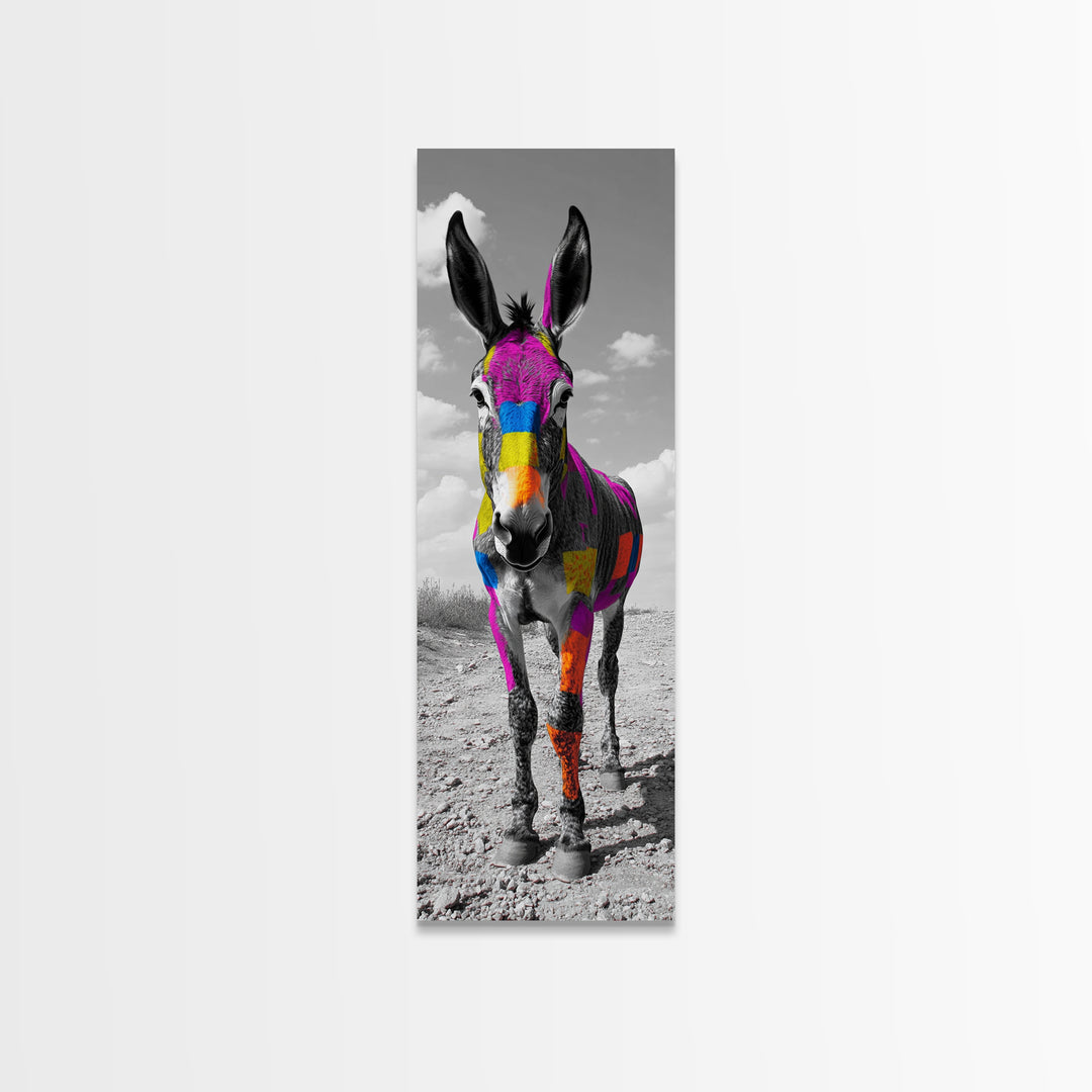 Colorful Donkey, Bold Animal Art, Fun Wall Decor, Framed Canvas Print, Boho Playroom Art, Eclectic Animal Print, Vibrant Farmhouse Decor