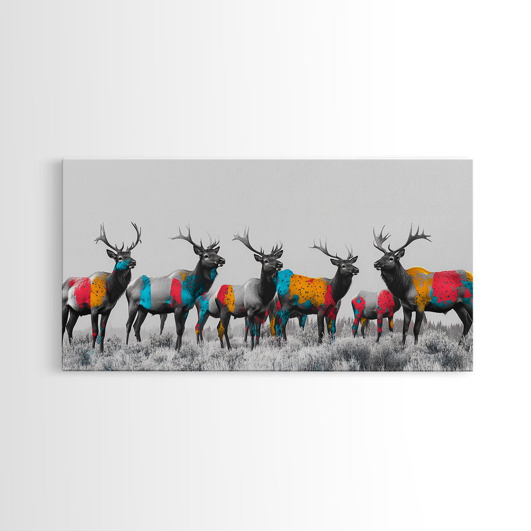 Colorful Elk Herd, Modern Wildlife Art, Pop Art Animal Decor, Nature Wall Accent, Canvas Print, Bold Living Room or Cabin Wall Art