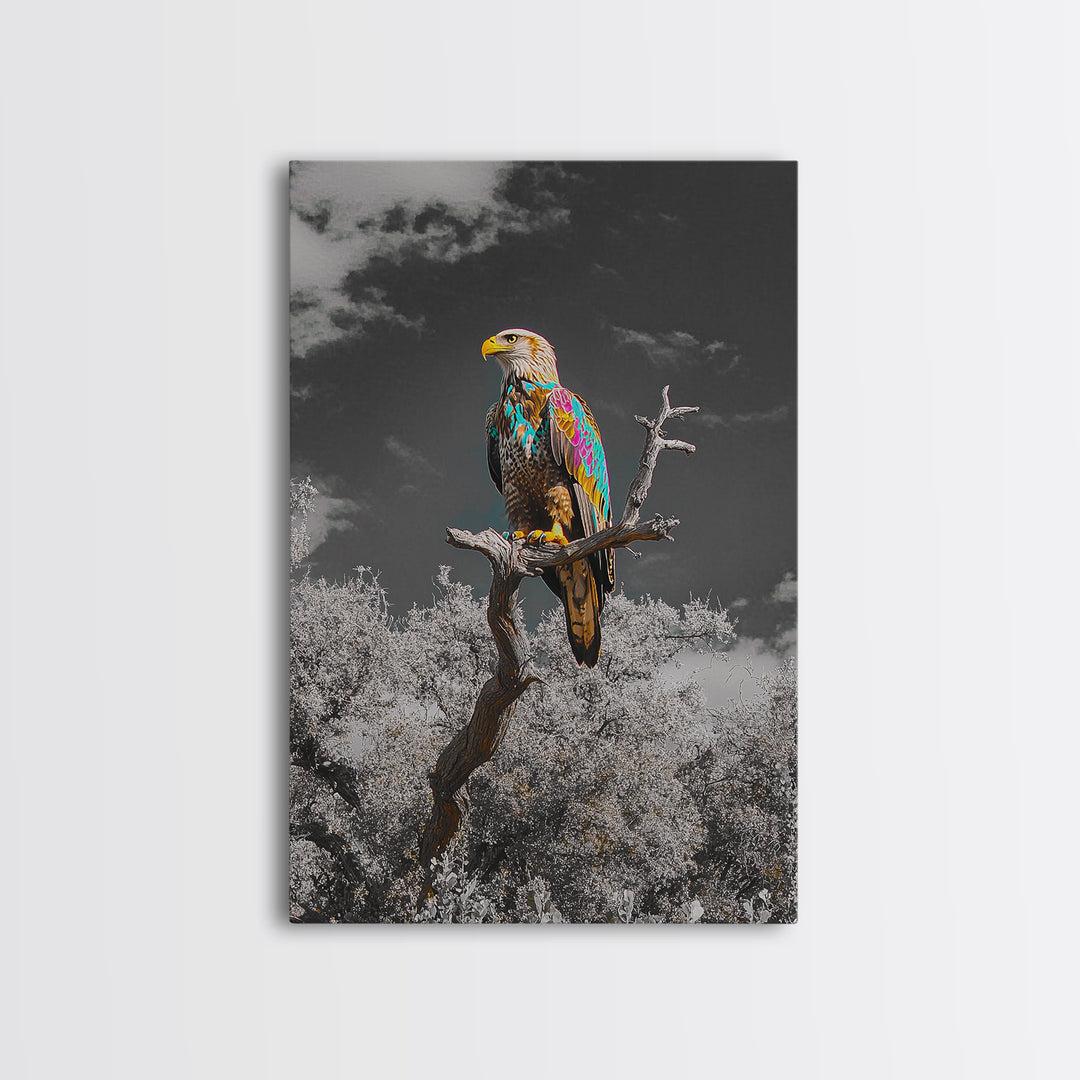 Colorful Eagle, Bold Bird Art, Vibrant Wildlife Print, Framed Canvas Print, Rustic Cabin Wall Art, Nature Lover Gift, Fall Decor