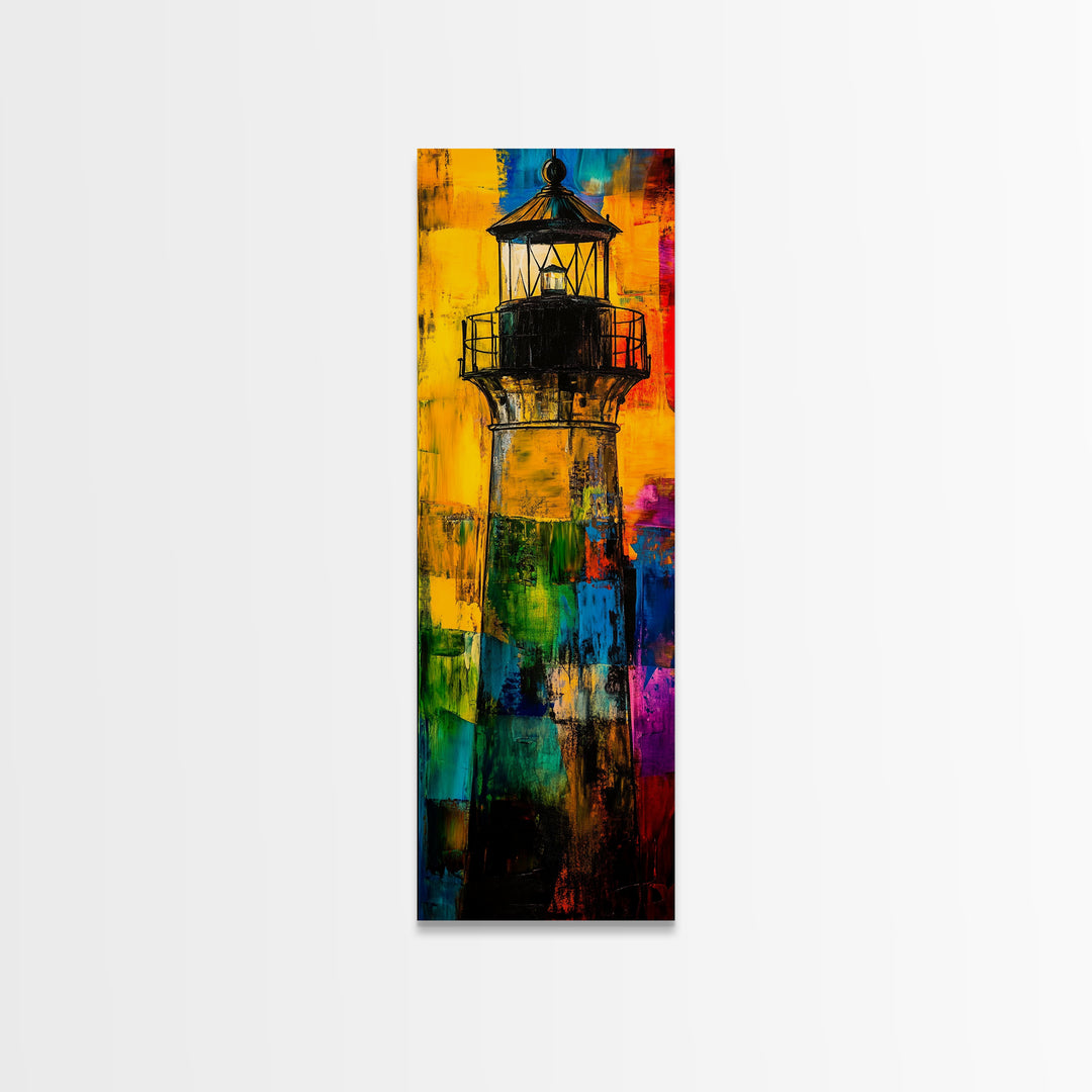 Colorful Lighthouse, Abstract Coastal Art, Nautical Wall Decor, Canvas Print, Bold Modern Art, Vibrant Home Decor, Living Room Art