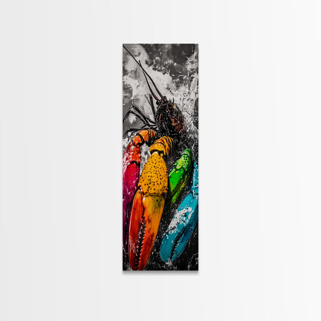 Colorful Lobster, Vibrant Sea Life, Coastal Wall Art, Framed Canvas Print, Nautical Decor, Kitchen Artwork, Unique Statement Piece