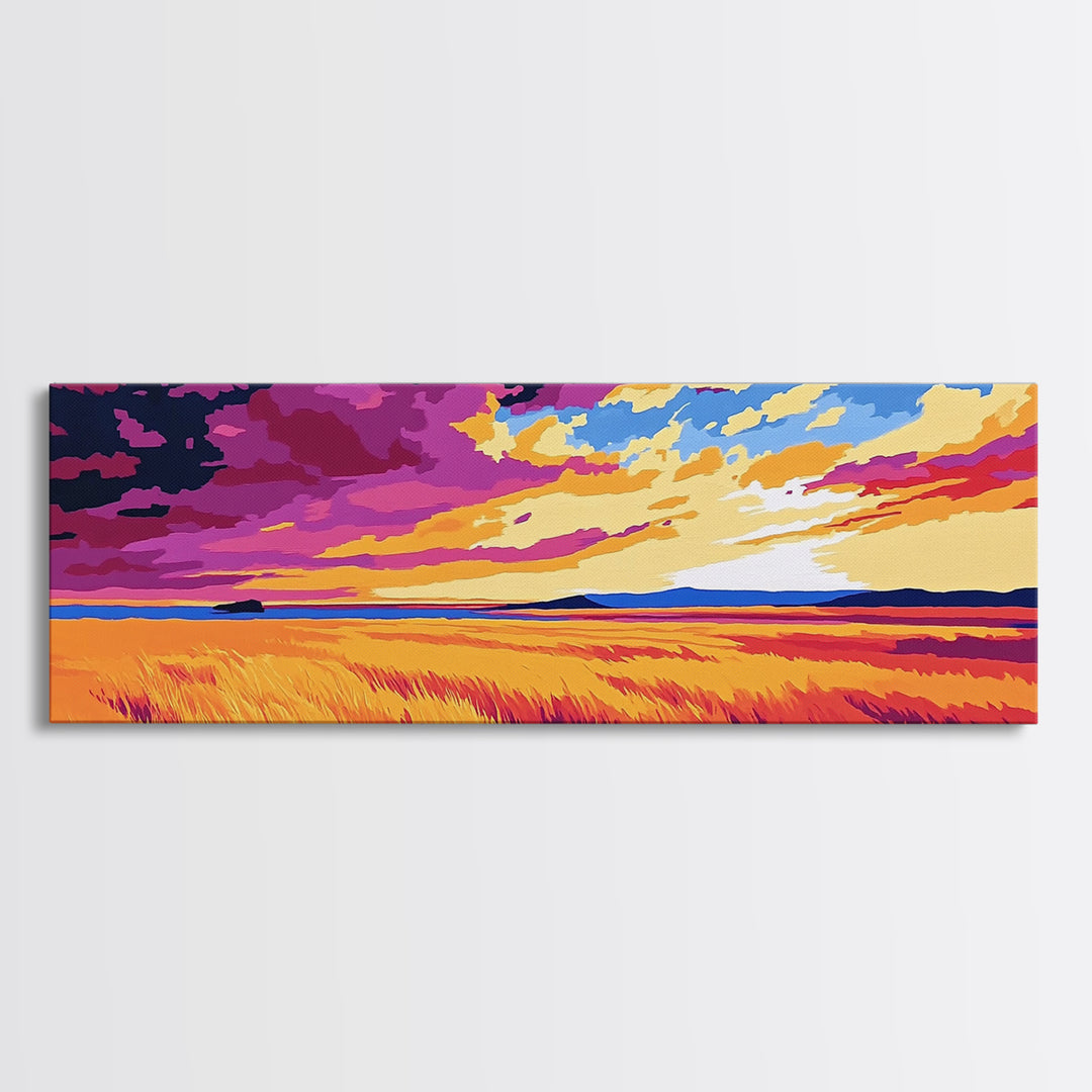 Colorful Landscape Art, Framed Canvas Print, Extra Wide Art, Moody Art, Pink Orange Wall Art, Rustic Decor, Living Room Art, Gift Idea