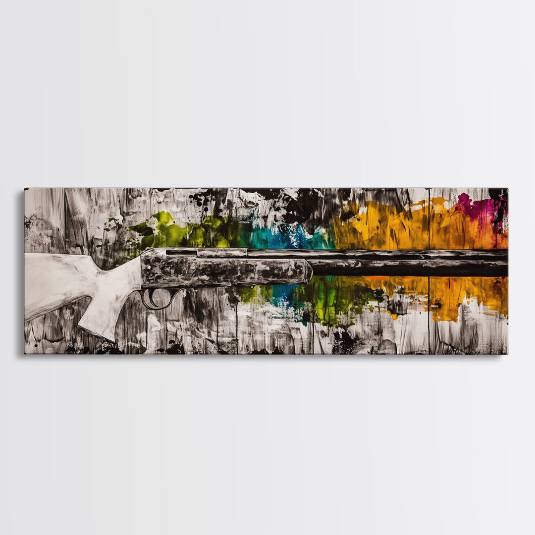 Colorful Rifle, Gun Art, Abstract Firearm Painting, Modern Wall Art, Man Cave Decor, Bold Art, Framed Canvas Print, Unique Gift