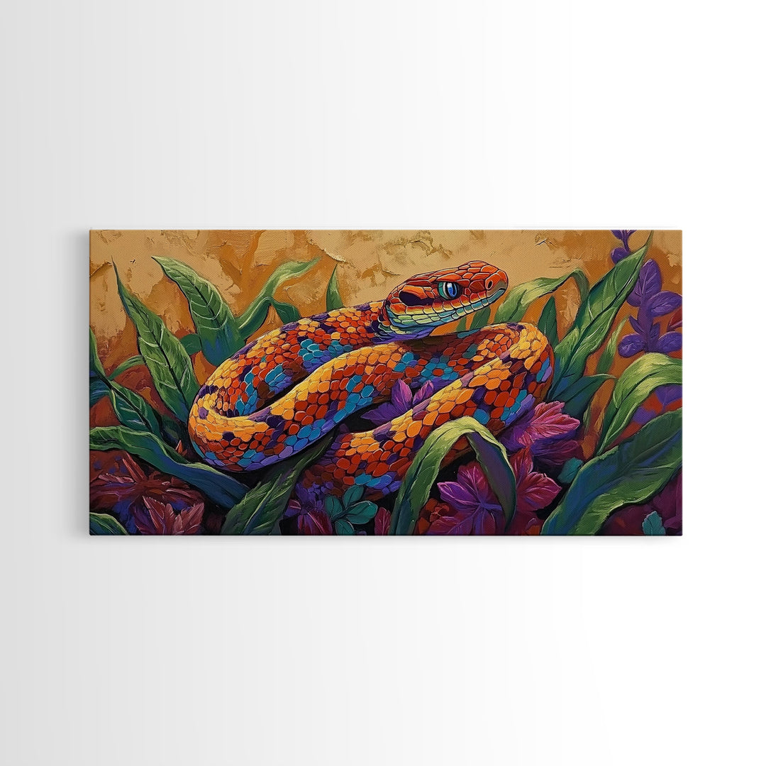 Colorful Snake, Nature, Framed Canvas Print, Jungle Reptile Wall Art, Tropical Home Decor, Bold Wildlife Art, Bedroom Accent, Boho Style