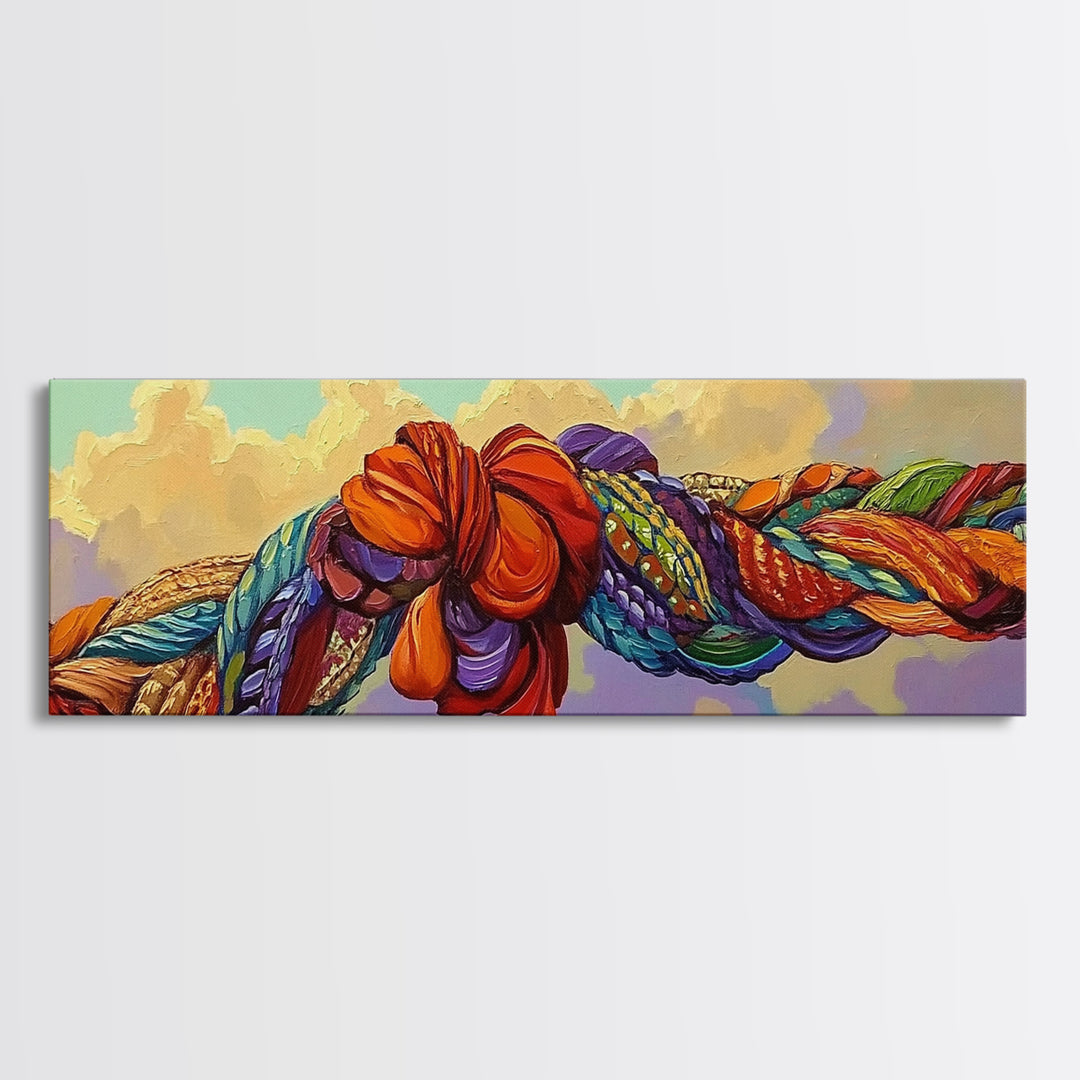 Colorful Rope Knot, Textured Fabric Art, Whimsical Decor, Framed Canvas Print, abstract textile art, fiber wall art, boho bedroom