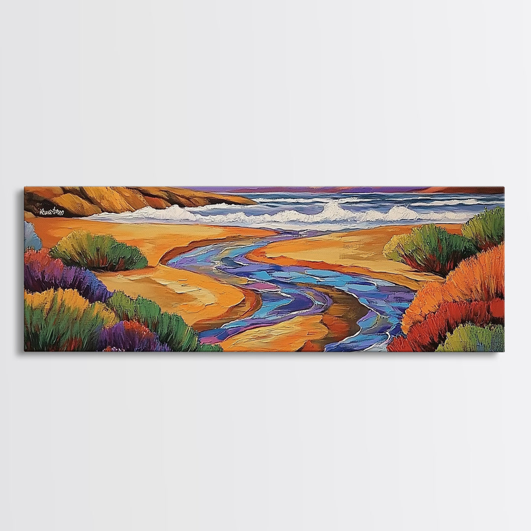 Colorful Shoreline Art, Flowing River Scene, Framed Canvas Print, Bold Nature Decor, Southwest Style, Living Room or Hallway Art