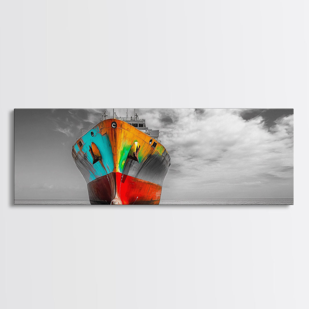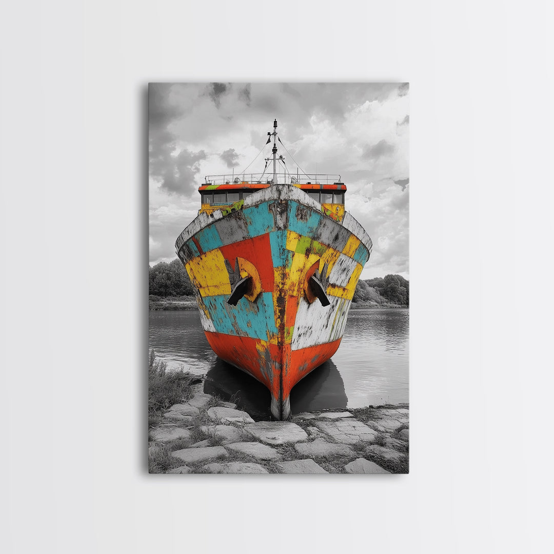 Colorful Ship, Rusty Boat, Ocean Photography, Seascape Wall Art, Framed Canvas Print, Coastal Decor, Nautical Theme, Man Cave Style