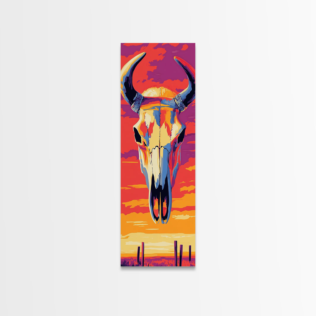 Colorful Skull Painting Canvas Print, Southwest Wall Art, Pink Orange Wall Art, Boho Art, Rustic Decor, Western Art, Halloween Art, Cowboy Art