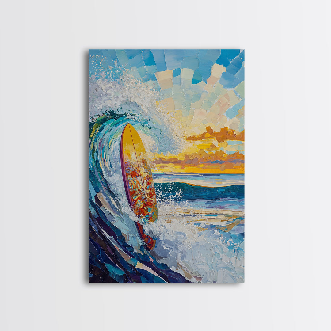 Colorful Surf Wave Canvas Print with Coastal Cowgirl Wall Art and Summer Beach Sunset Scene for Vibrant Coastal Decor