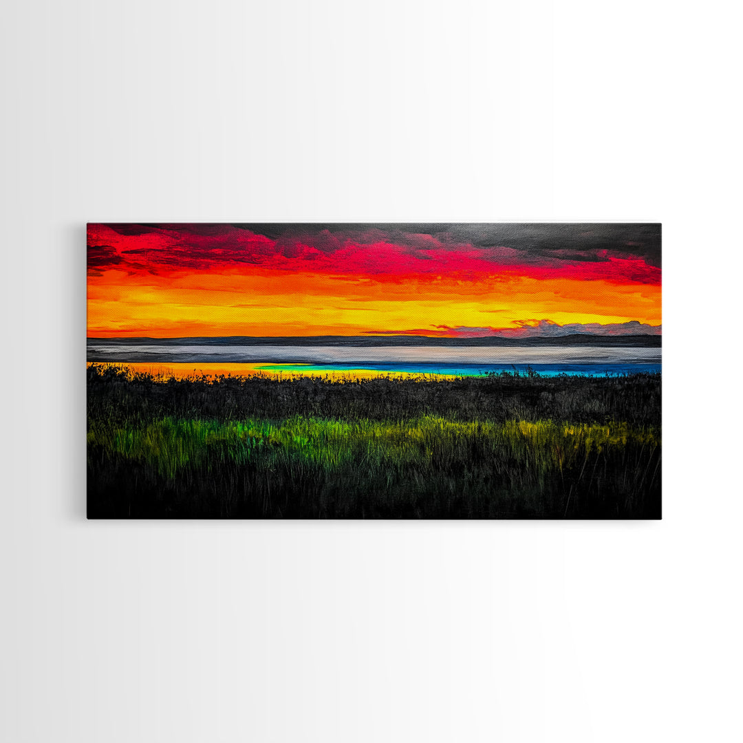 Colorful Sunset Painting, Abstract Landscape Art, Vibrant Sky Wall Decor, Modern Boho Art, Living Room Statement Artwork, Canvas Print