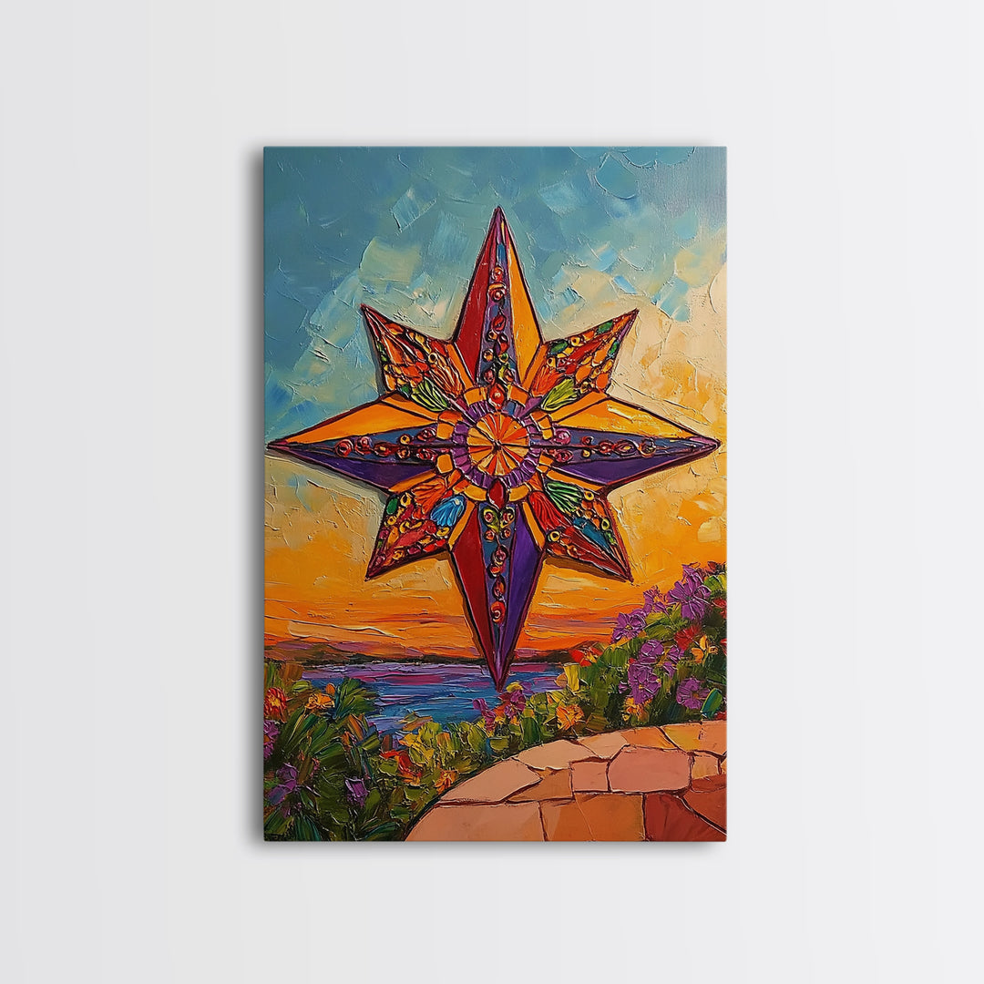 Colorful Starburst Sky, Sunset Mosaic Star Art, Vibrant Landscape Design, Canvas Print, Fall Living Room Decor, Boho Wall Accent
