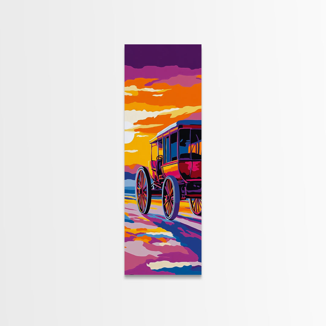 Colorful Stagecoach Painting Canvas Print, Wild West Art, Southwest Wall Art, Rustic Decor, Pink Orange Wall Art, Western Home Art
