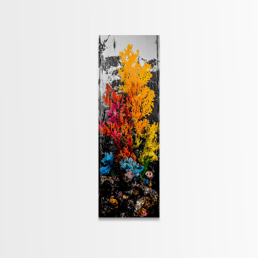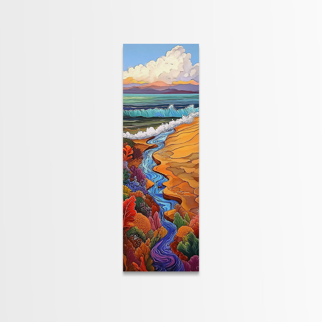 Coral Stream, Ocean Meets Land, Coastal Colors, Canvas Print, vibrant tropical seascape, underwater fantasy art, bathroom or beach house decor
