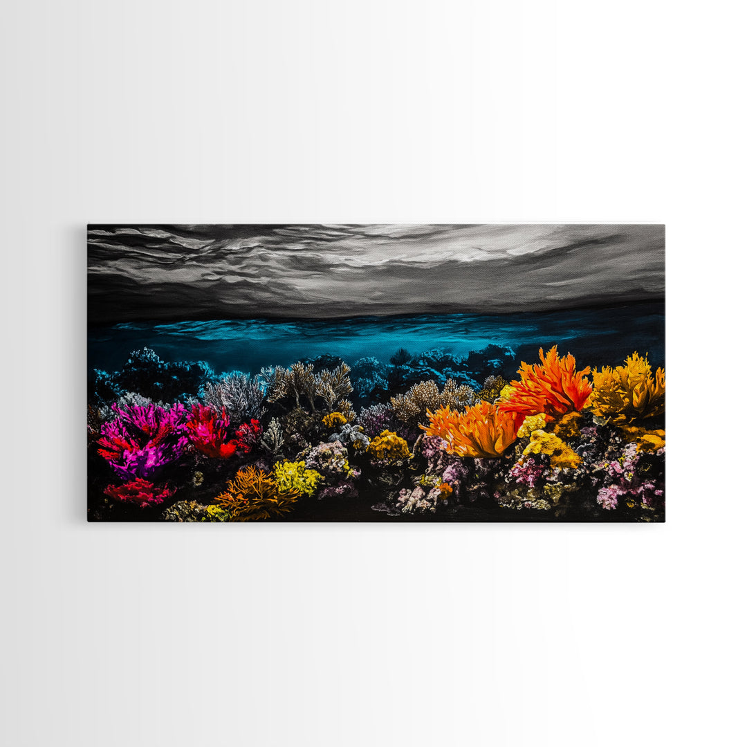 Coral Reef, Ocean Horizon, Cloudscape, Canvas Print, Underwater Nature Photography, Bathroom Wall Art, Marine Coastal Decor