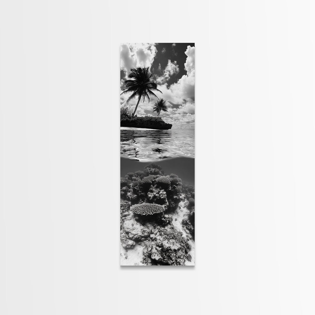 Coral Reef, Tropical Island, Split Ocean View, Canvas Print, Coastal Bathroom Decor, Underwater Photography Art, Island Escape Style
