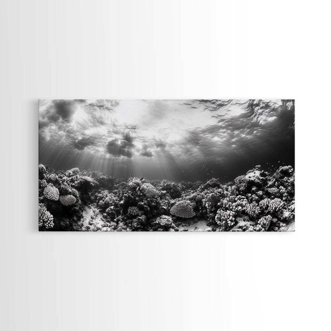 Coral Reef, Ocean Depths, Sunlight Rays, Marine Life, Canvas Print, Minimalist Nature Art, Bathroom Decor, Underwater Scene, Bedroom Wall Art