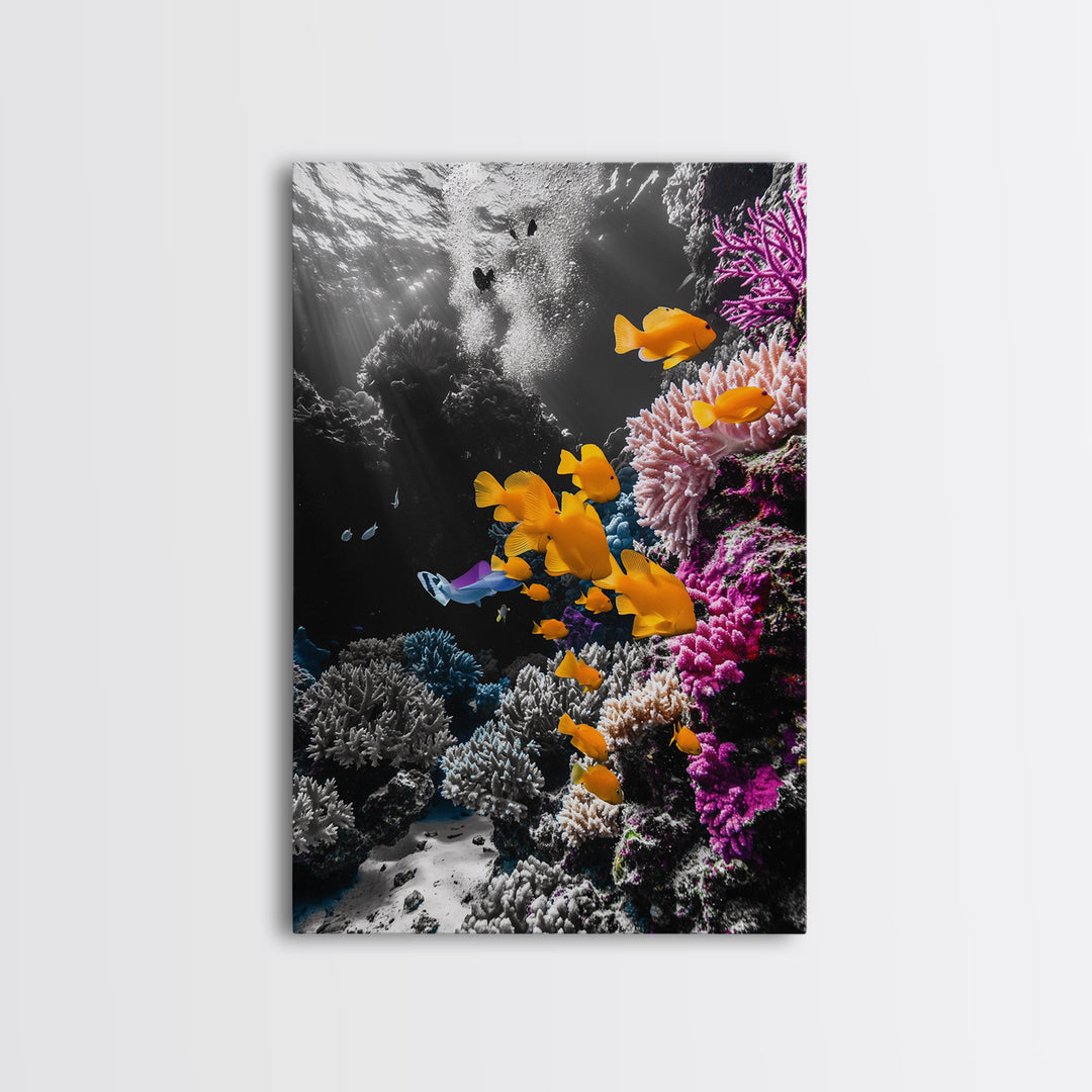 Coral Reef, Underwater Art, Ocean Wall Art, Framed Canvas Print, Colorful Marine Life, Living Room Decor, Coastal Home Decor