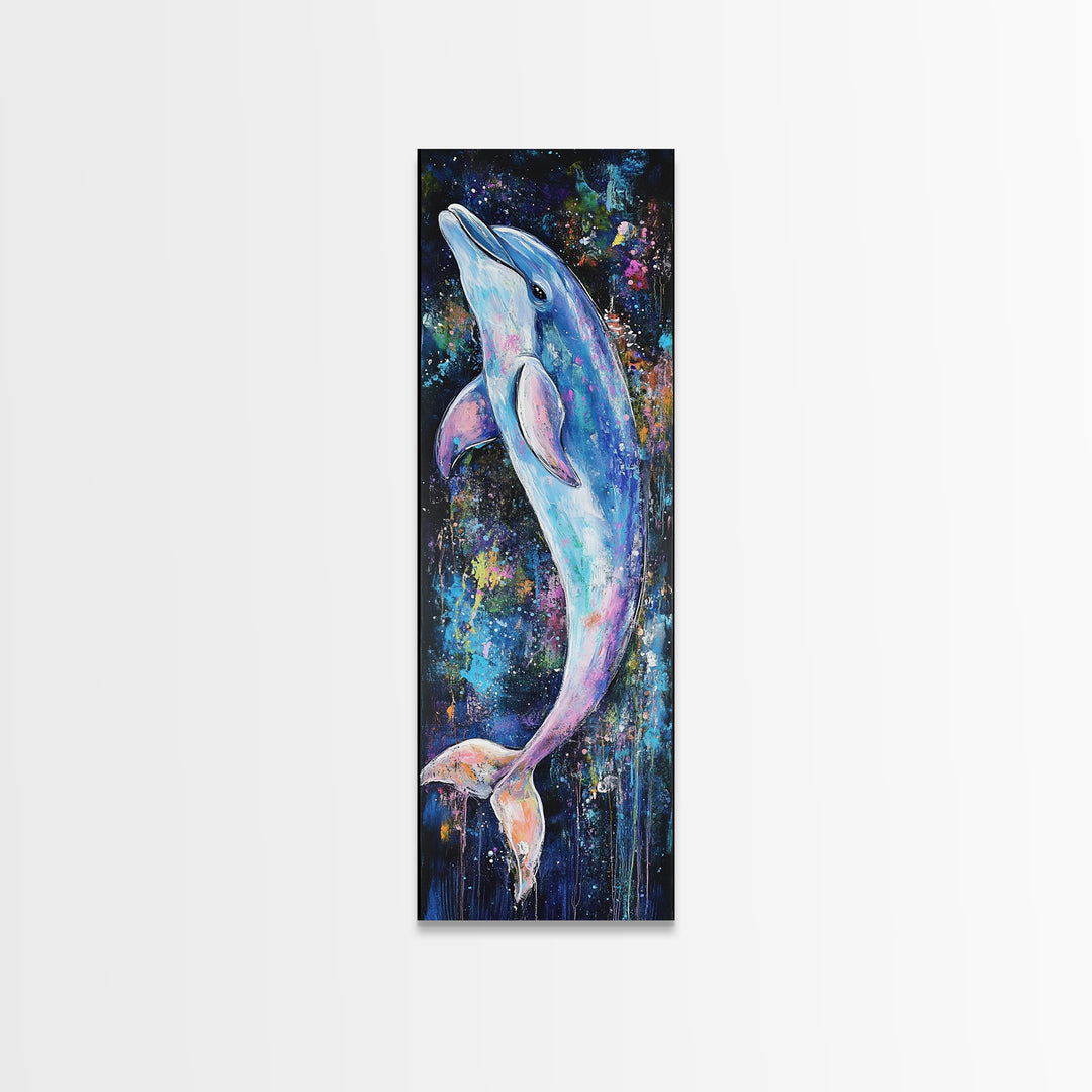 Cosmic dolphin, dolphin painting, ocean wall art, nautical painting, whimsical art, blue and green wall art, framed canvas print