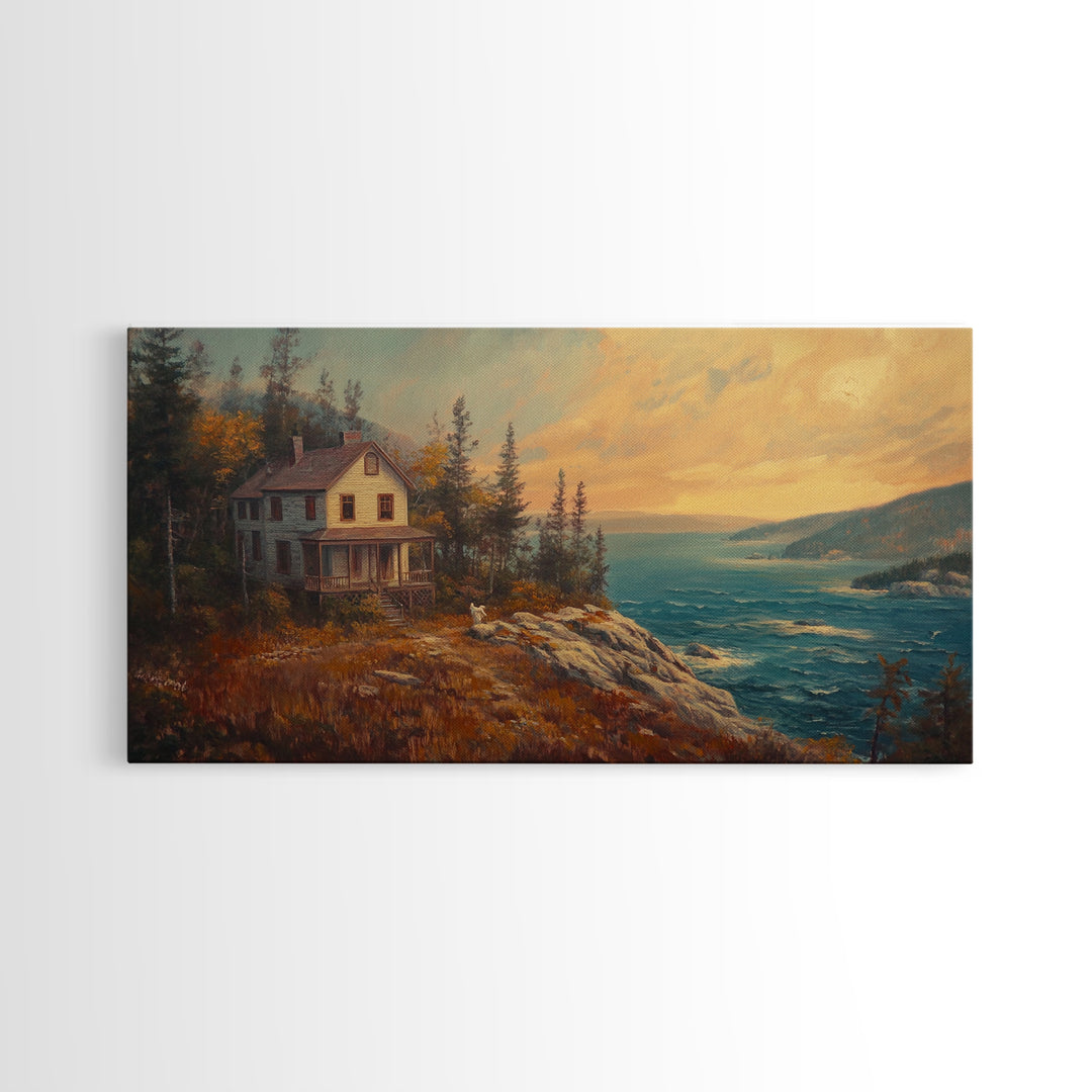 Cottagecore Landscape Painting Print, Coastal Landscape Decor, Coastal Landscape Painting, Ready To Hang Wall Art, Nautical Decor