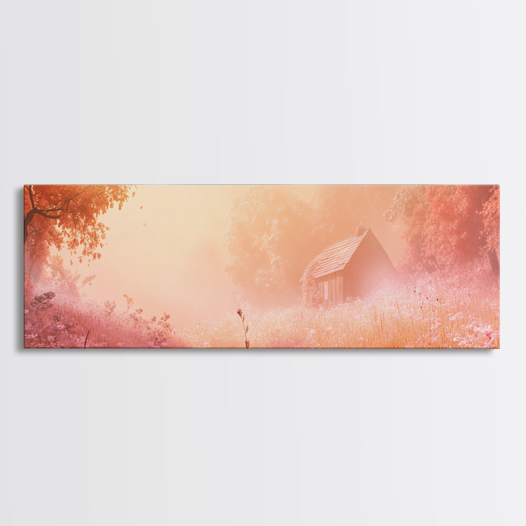 Cottagecore Farmhouse Landscape Framed Canvas Print - Wildflower Field Painting, Rustic Decor, Gift Idea, Bedroom Art, Panoramic Wall Art