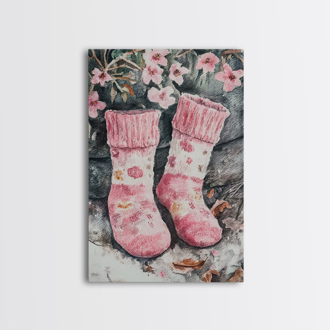 Cottagecore Pink Socks Canvas Print Whimsical Wildflower Inspired Farmhouse or Rustic Living Room Bedroom Home Art Decor