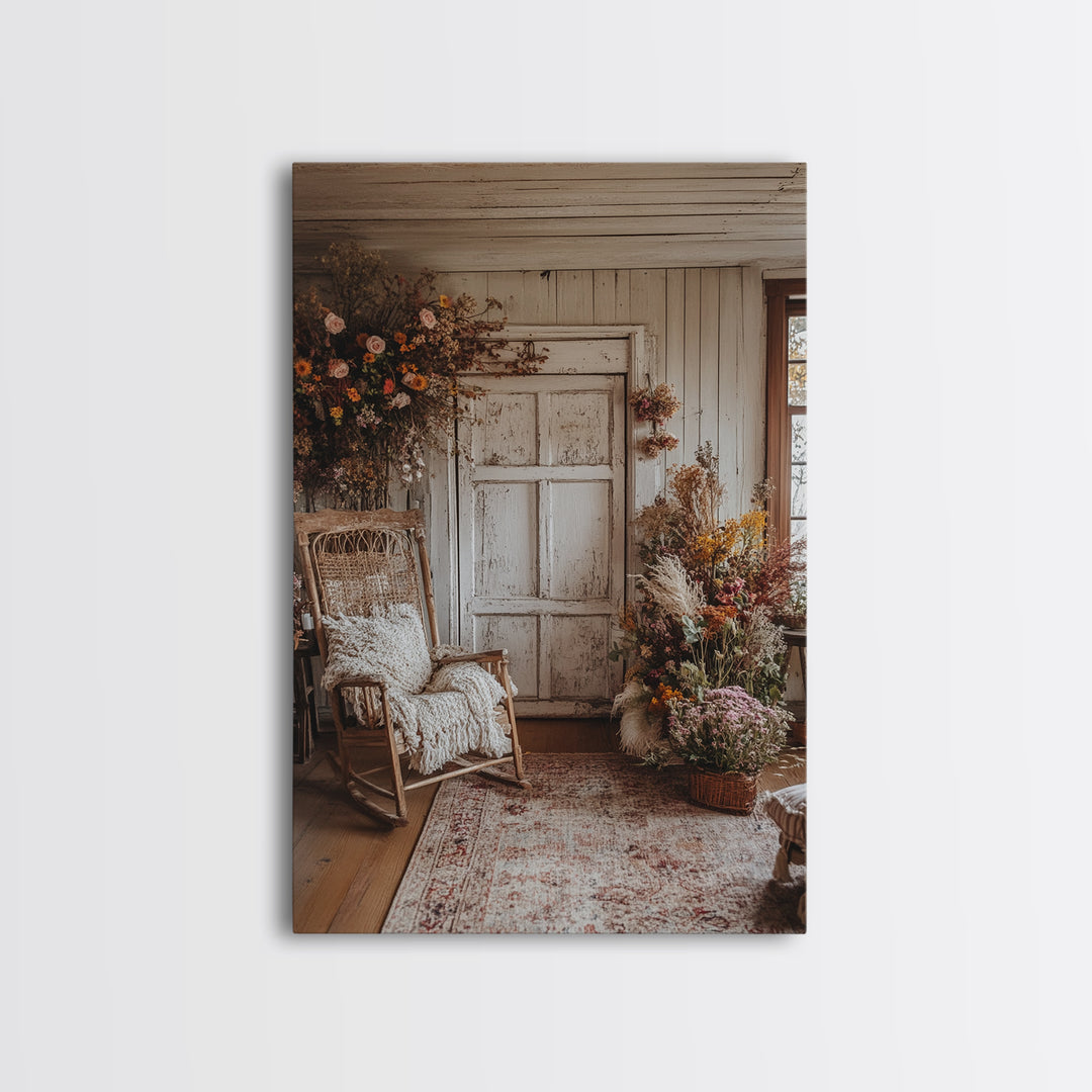 Cottagecore Farmhouse Decor Framed Canvas Print Rustic Floral Wall Art Wildflower Botanical Prints Bedroom Cozy Home Accent Artwork