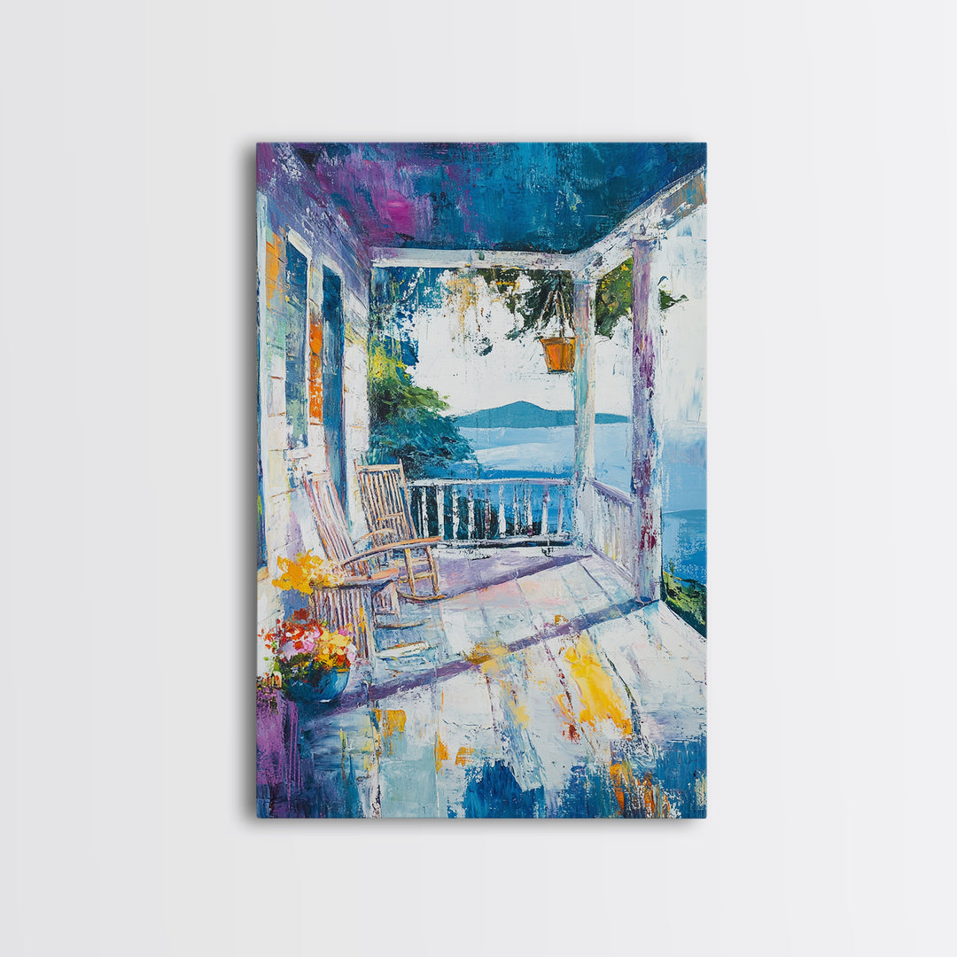 Cottage Porch View, Coastal Landscape Art, Nautical Painting, Rustic Wall Art, Cottagecore Wall Art, Living Room Art, Canvas Print