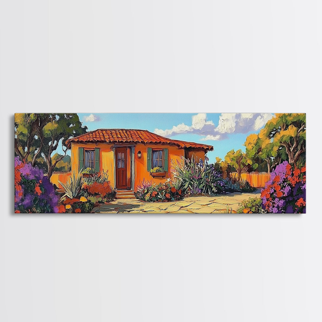 Cottage Garden Bliss, Adobe House Art, Southwestern Florals, Framed Canvas Print, Colorful Wall Decor, Kitchen Country Style