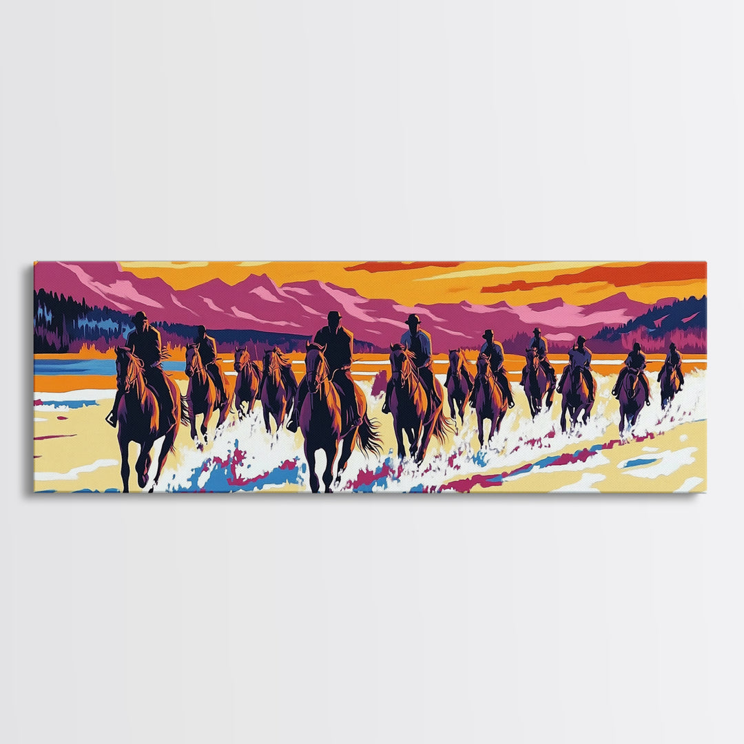 Cowboy Art Print, Western Wall Art, Horse Wall Art, Canvas Print, Wall Hanging, Panoramic Art, Ranch Decor, Western Art, College Dorm Decor