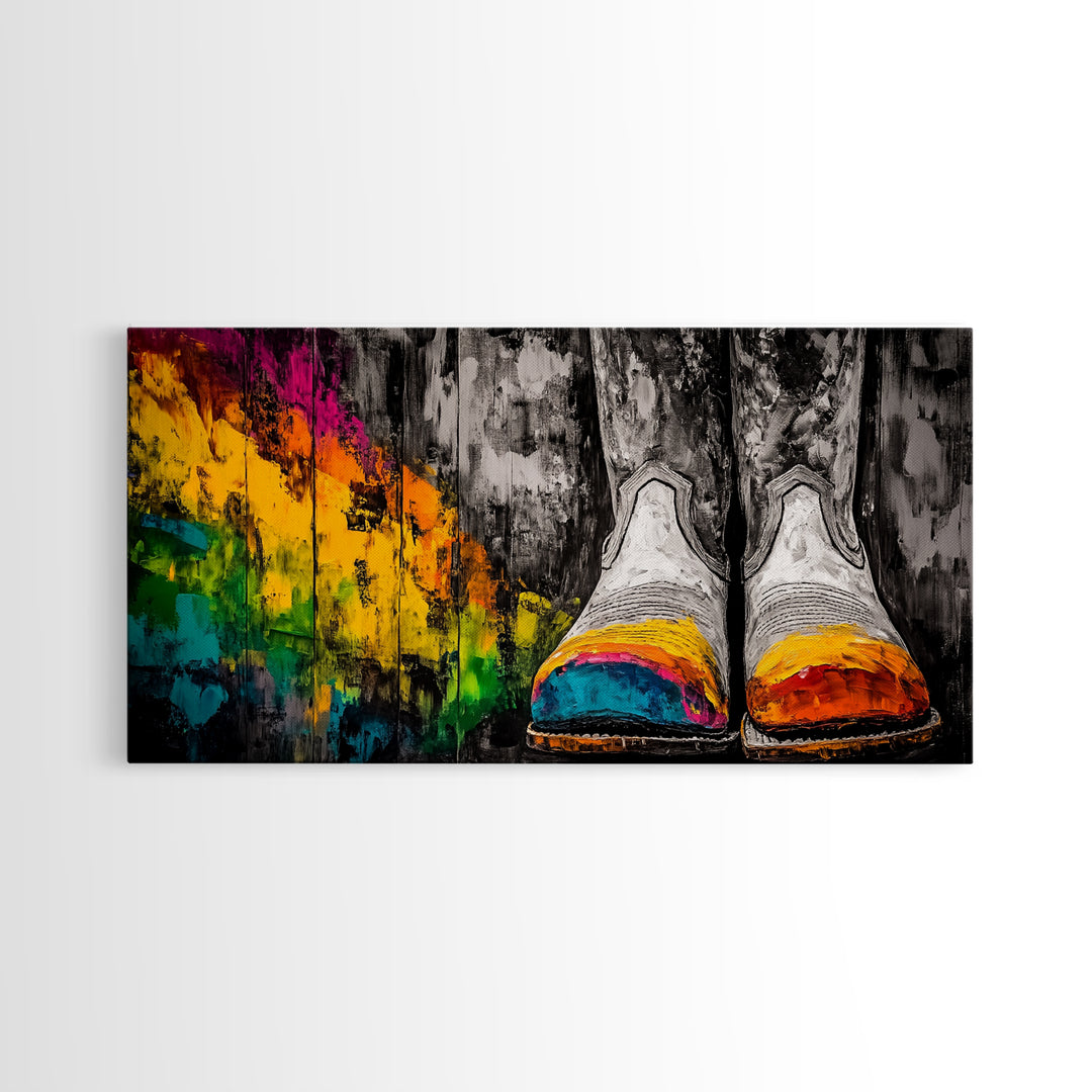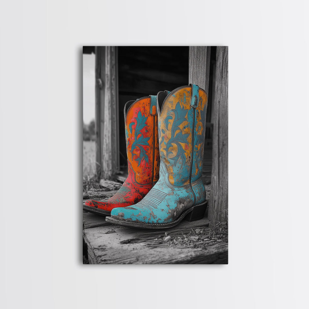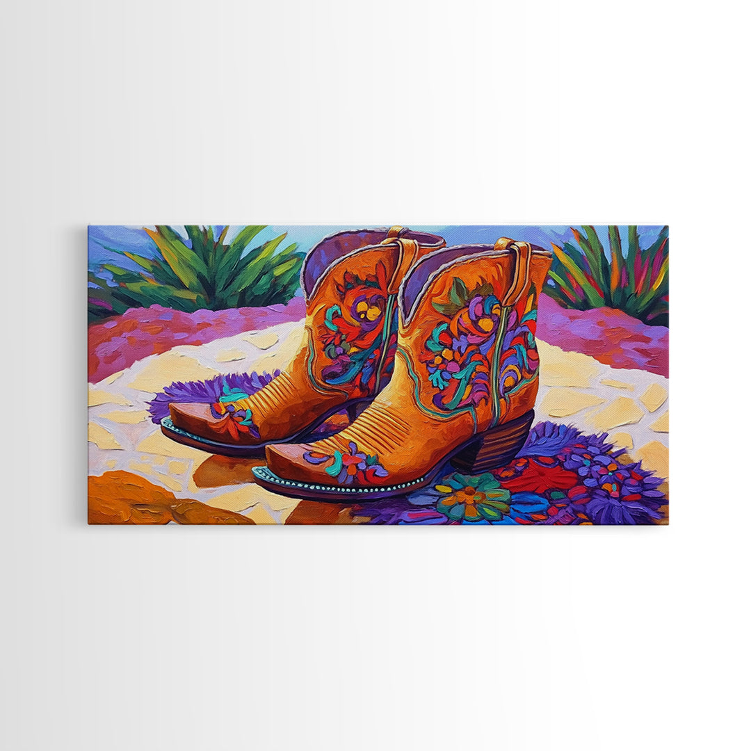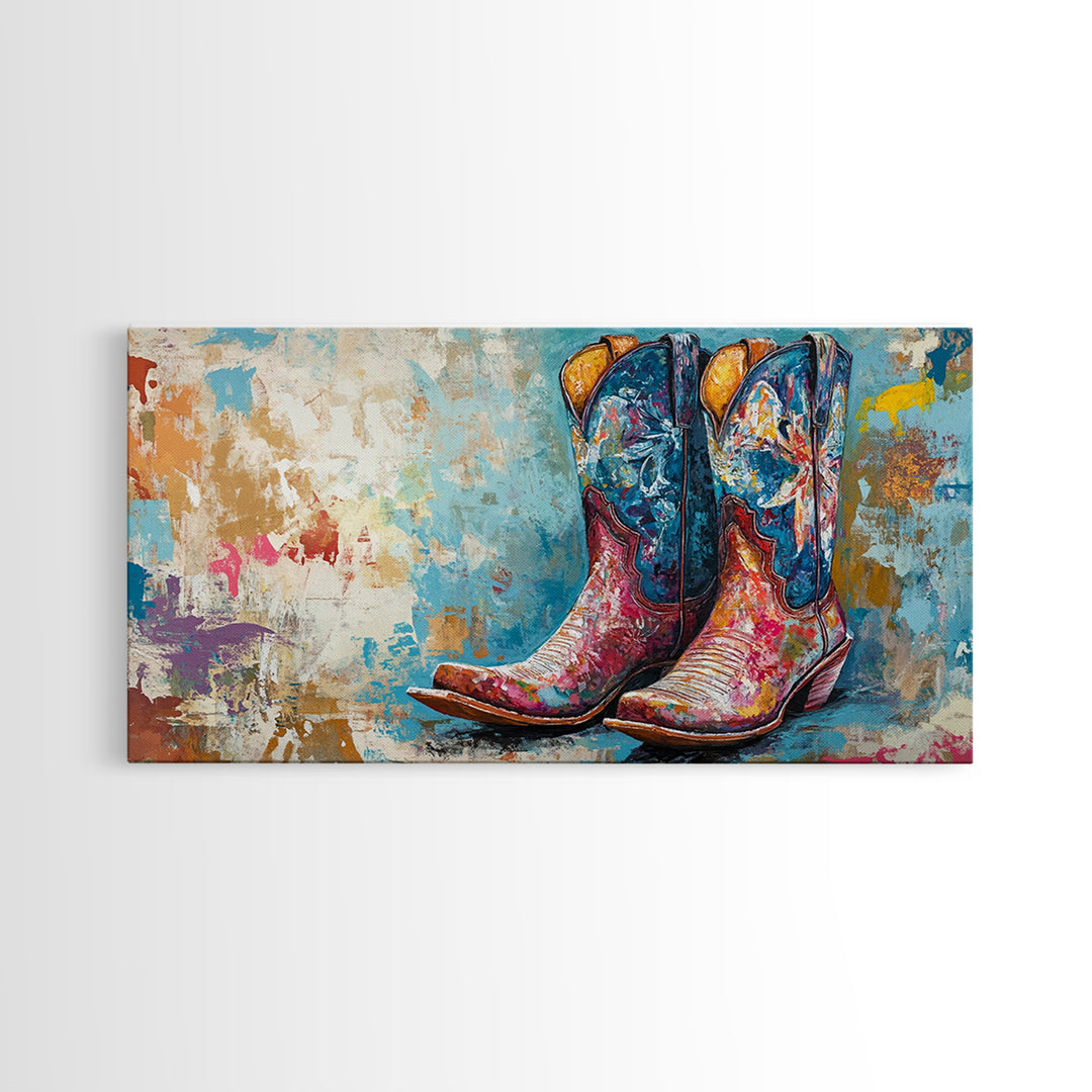 Cowboy Boots, Western Art, Rustic Wall Decor, Framed Canvas Print, Colorful Country Decor, Farmhouse Wall Art, Modern Southwest Art