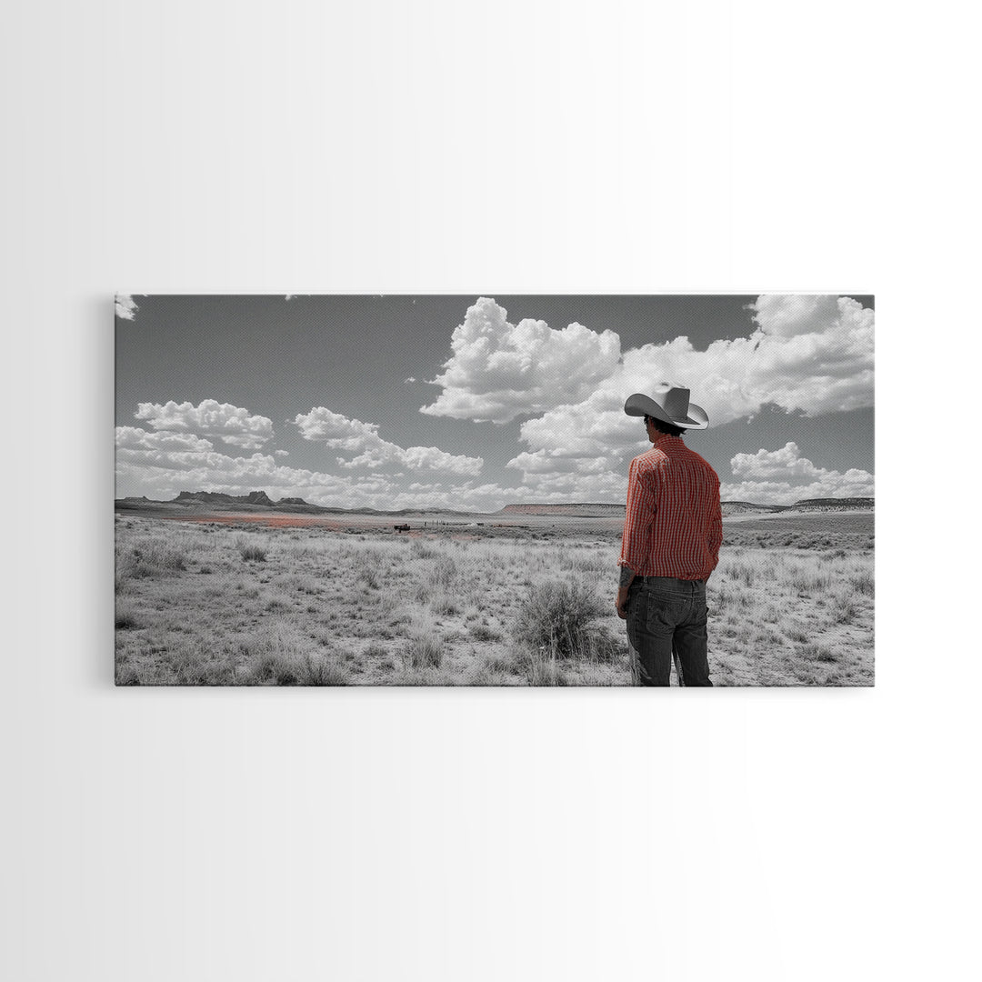 Cowboy Stare, Western Horizon, Desert Dream, American Spirit, Framed Canvas Print, Rustic Bedroom Art, Country Wall Decor, Western Style