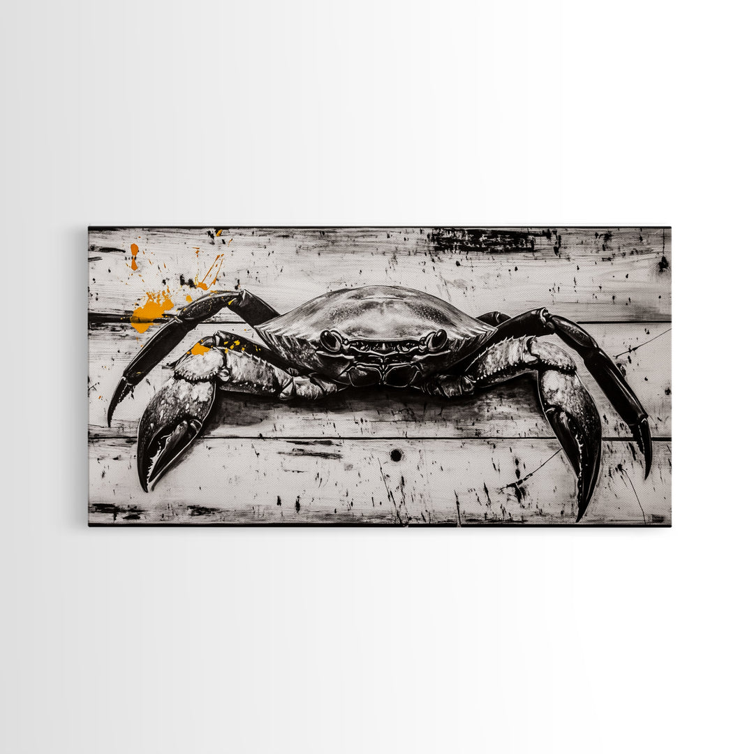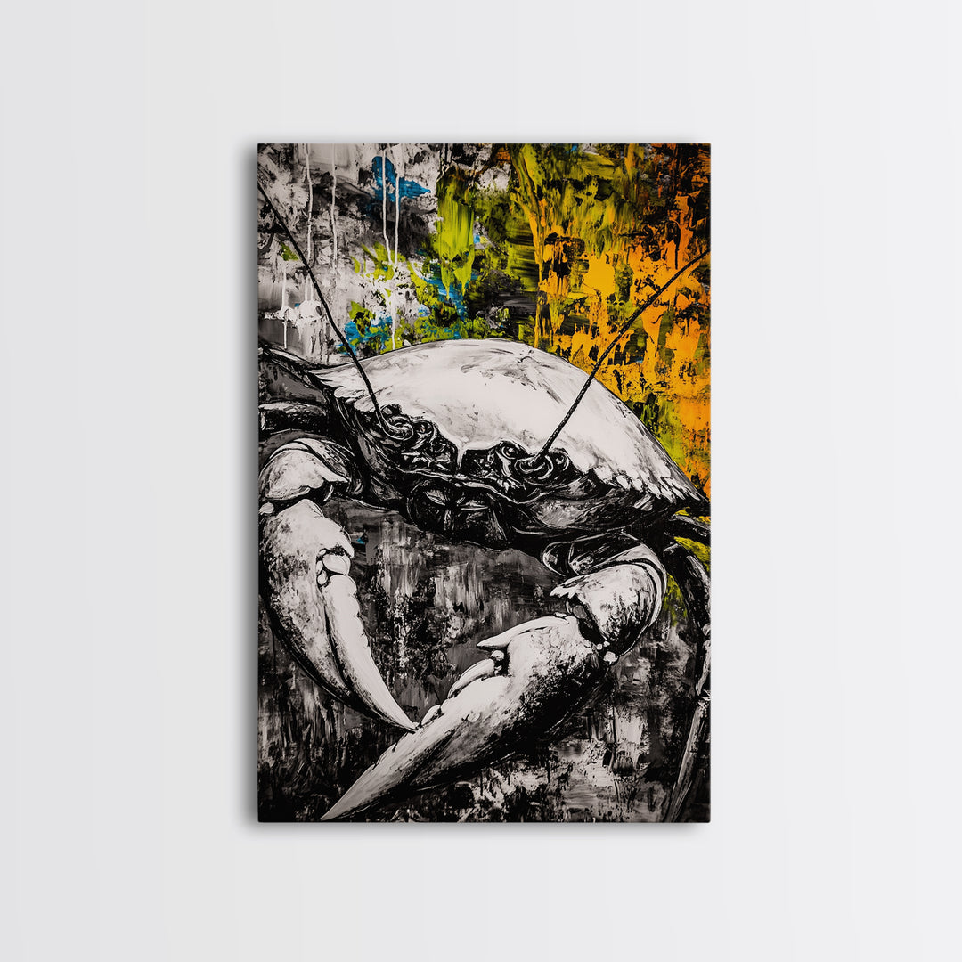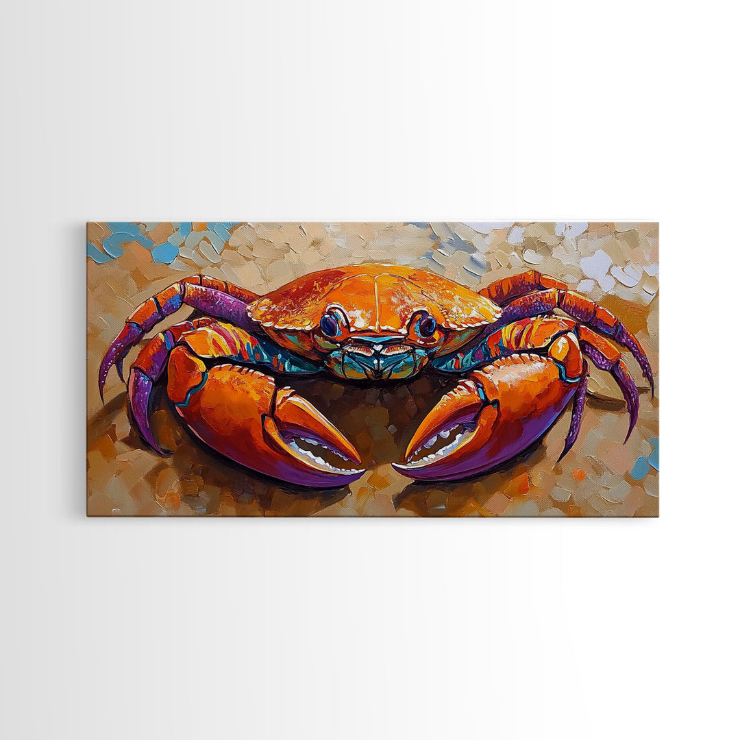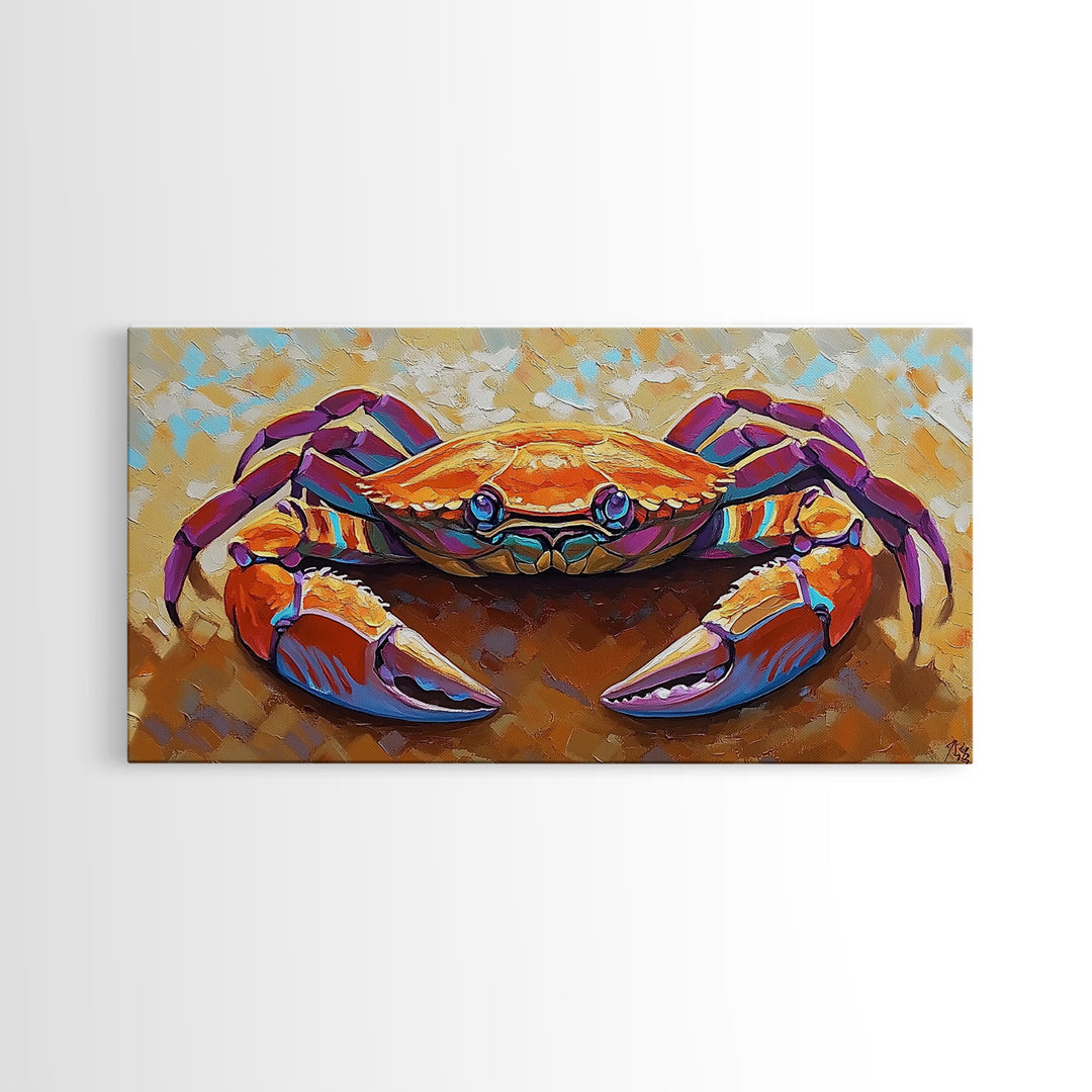 Crab Painting, Coastal Decor, Nautical Wall Art, Rustic Art, Framed Canvas Print, Ocean Artwork, Beach House Art, Marine Life Art