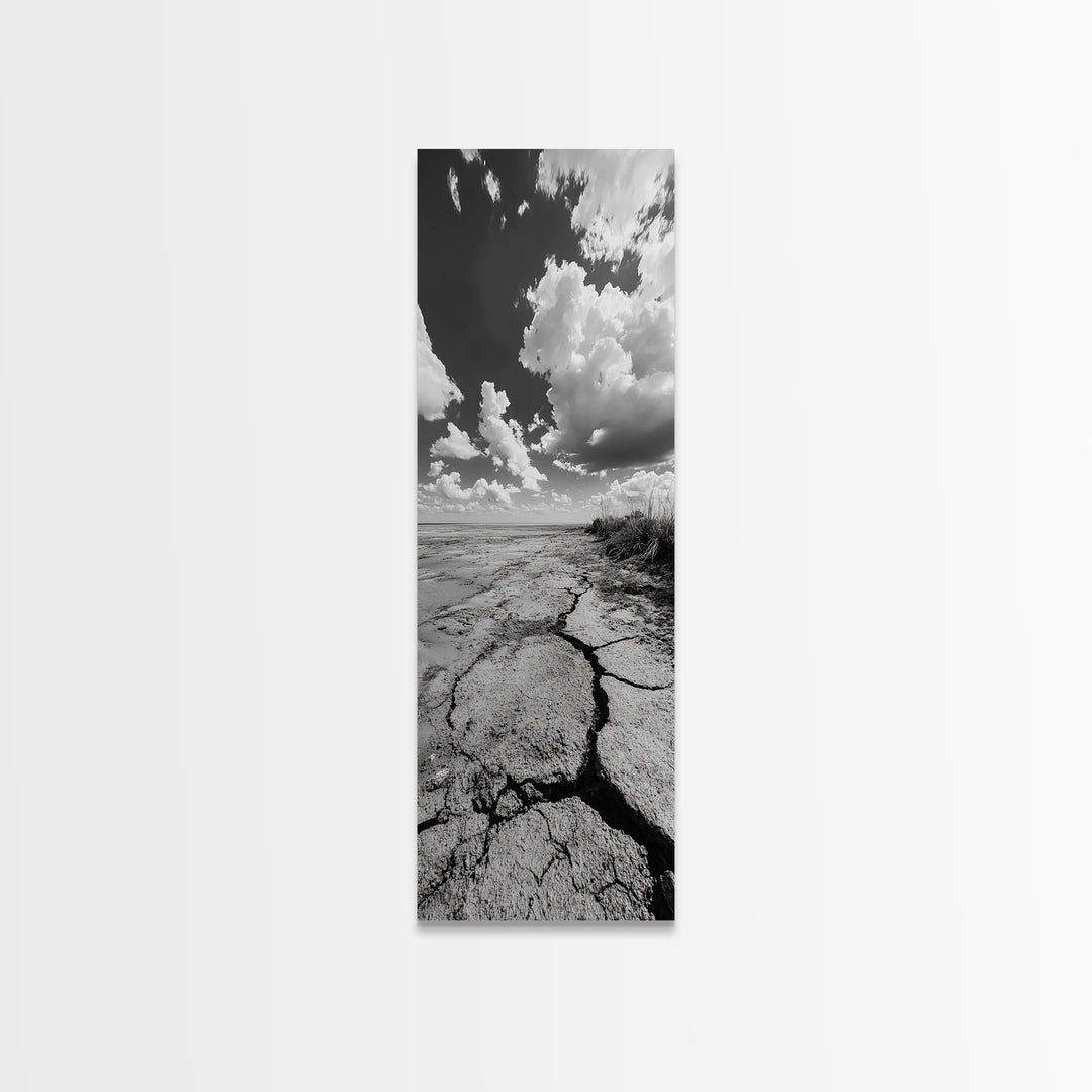Cracked Earth Drought, Barren Landscape, Nature Drama, Earth Tones, Framed Canvas Print, Fall Wall Art, Study Room Decor, Minimalist Style
