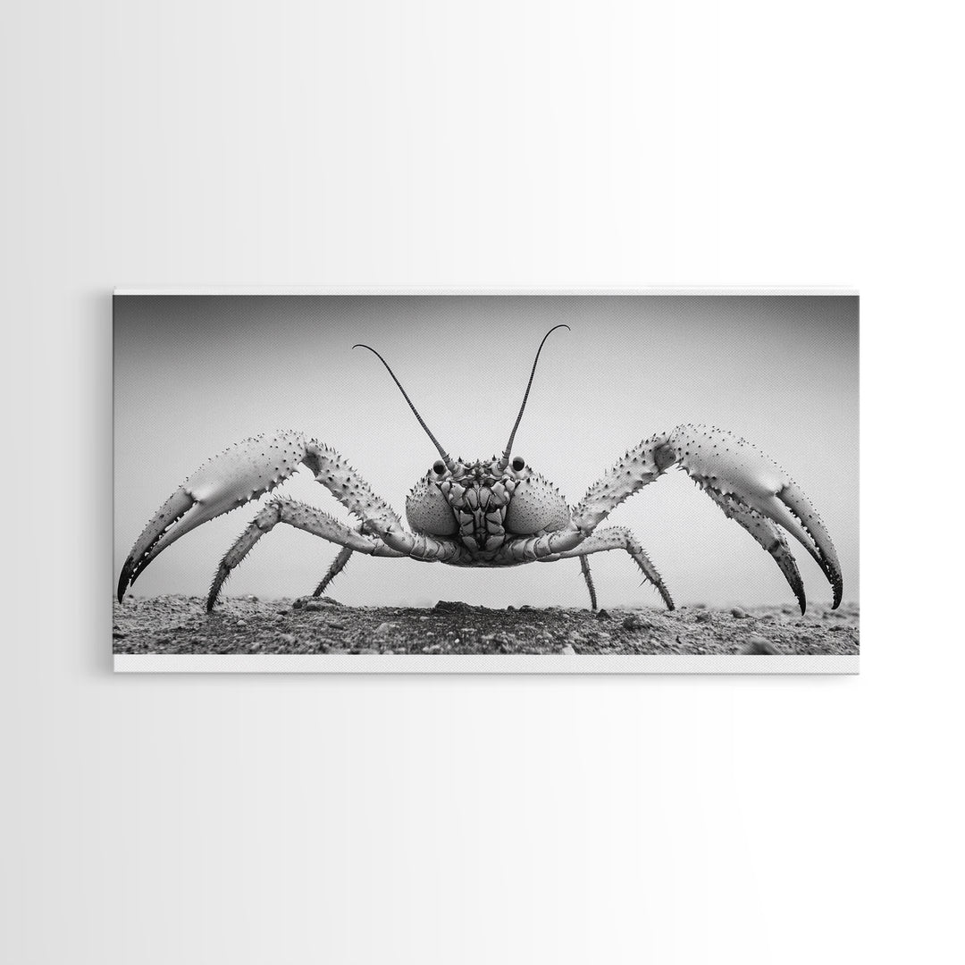 Crab Art, Beach Creature, Monochrome Photography, Nature Close-Up, Framed Canvas Print, Coastal Bathroom Art, Marine Home Style