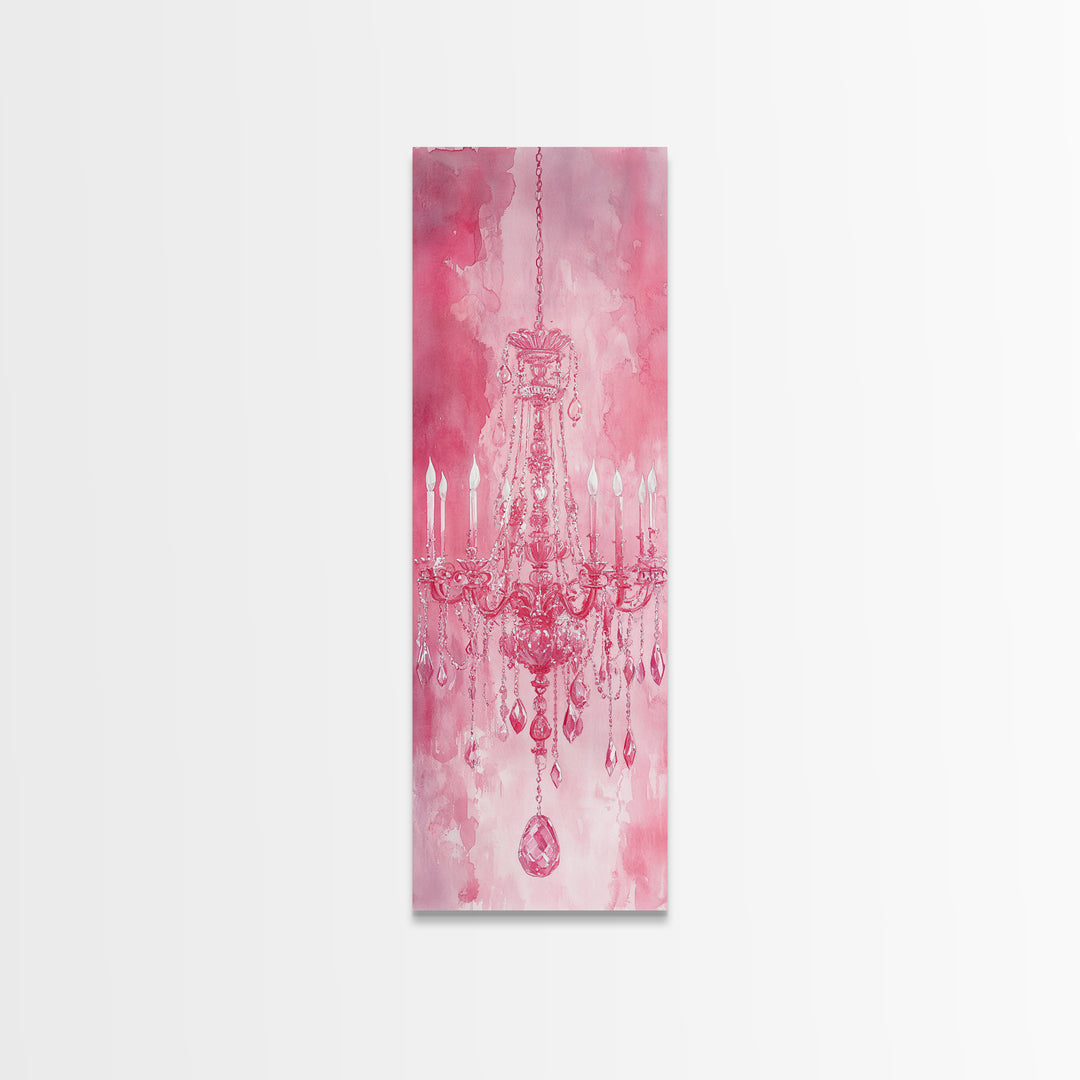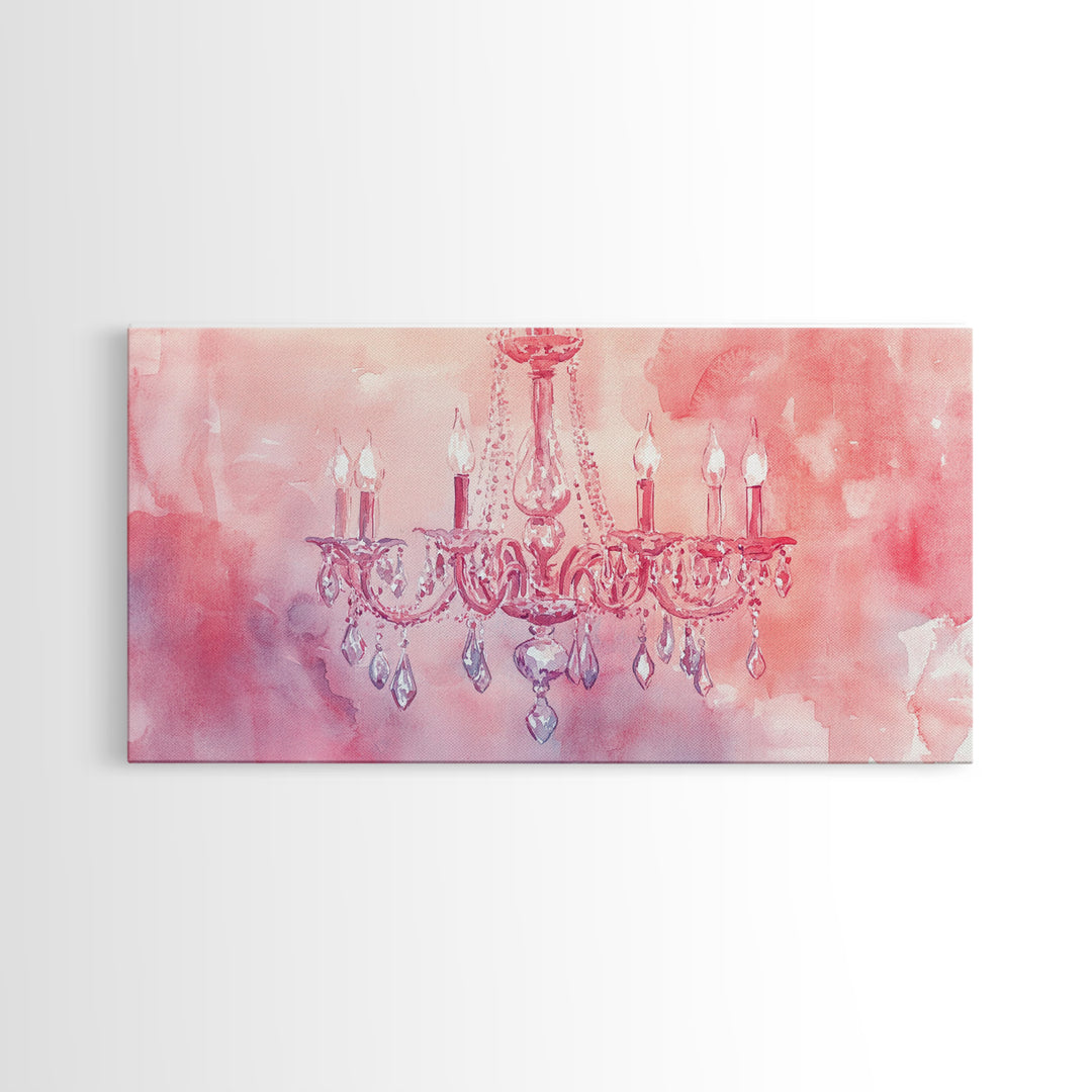 Crystal Chandelier Watercolor Framed Canvas Print, Elegant Pink Abstract Art, Light Whimsical Wall Decor, Vintage Glamour Artwork