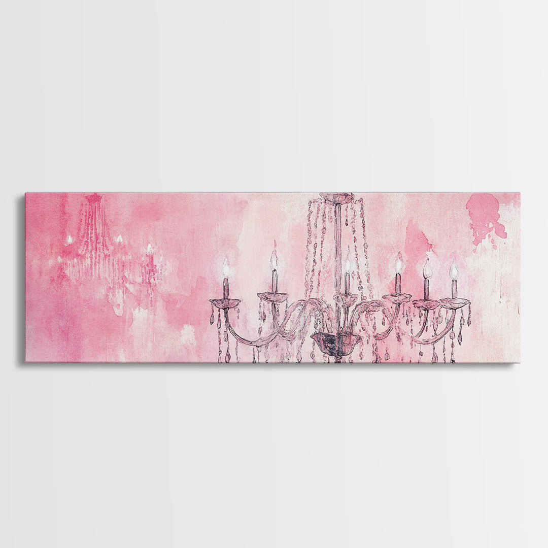 Crystal Chandelier Framed Canvas Print in Pink Abstract Art Perfect Above Sofa or Guest Room Art with Rustic and Glam Style